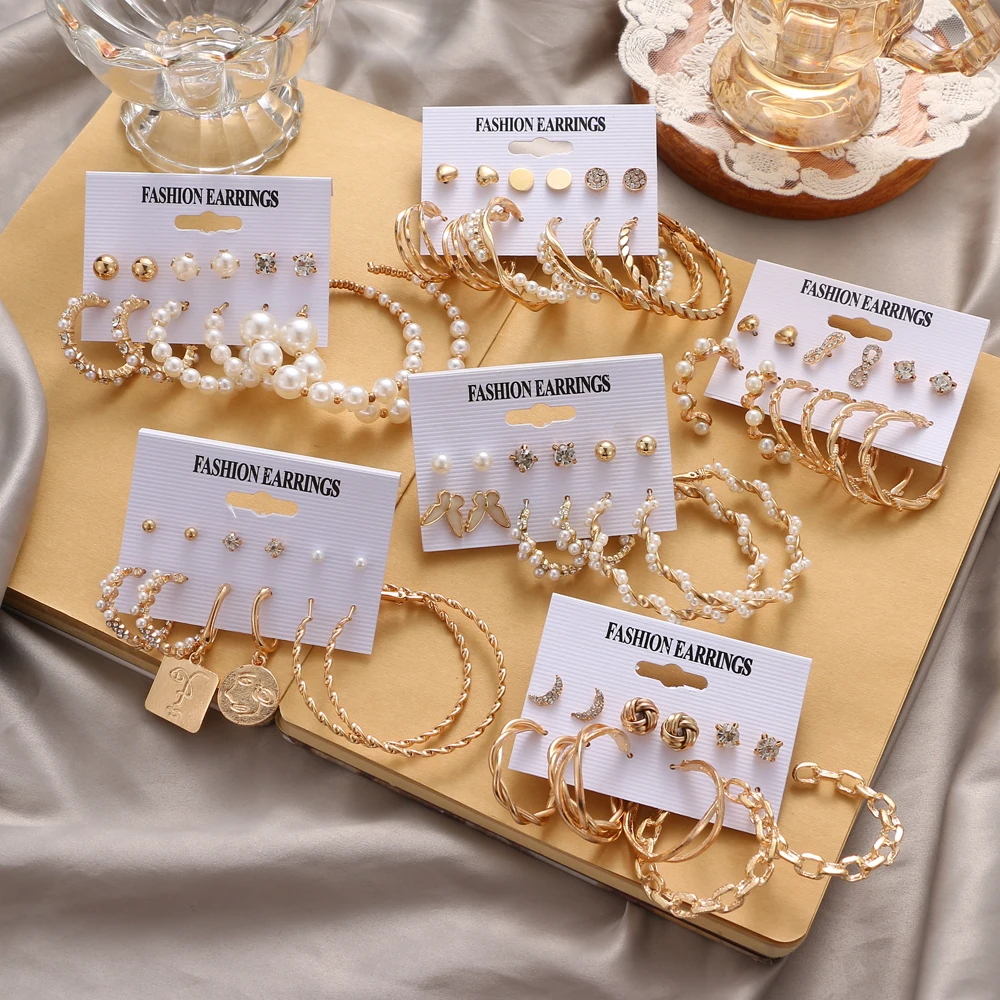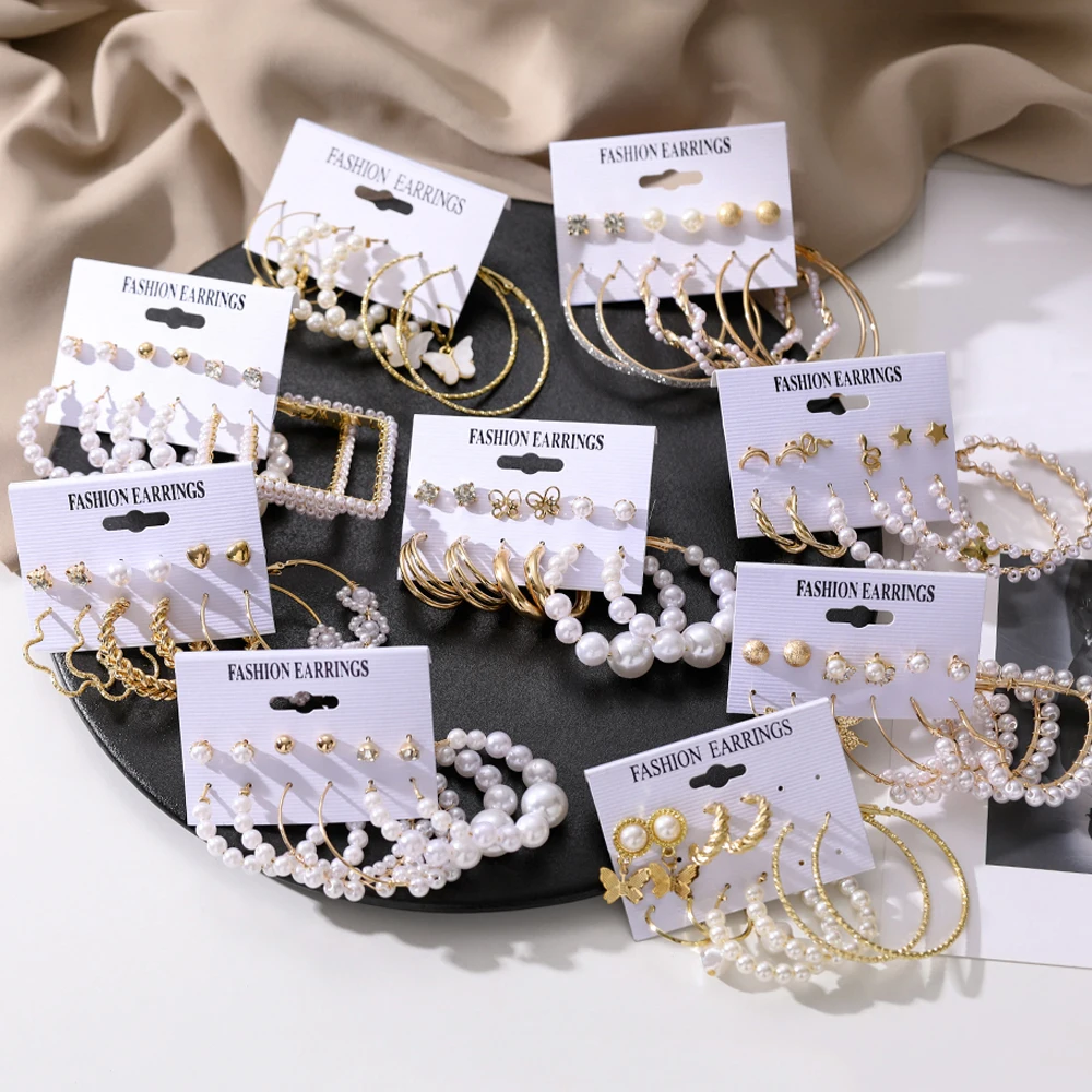 FNIO 2022 корейские модные винтажные серьги-кольца золотого цвета, набор, висячие серьги с жемчугом и бабочкой для женщин, ювелирные изделия