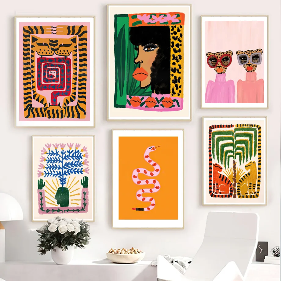 Абстрактный постер старого Египта красочный Тигр Леопард змея Модная девушка настенная живопись на холсте настенные картины декор для гостиной