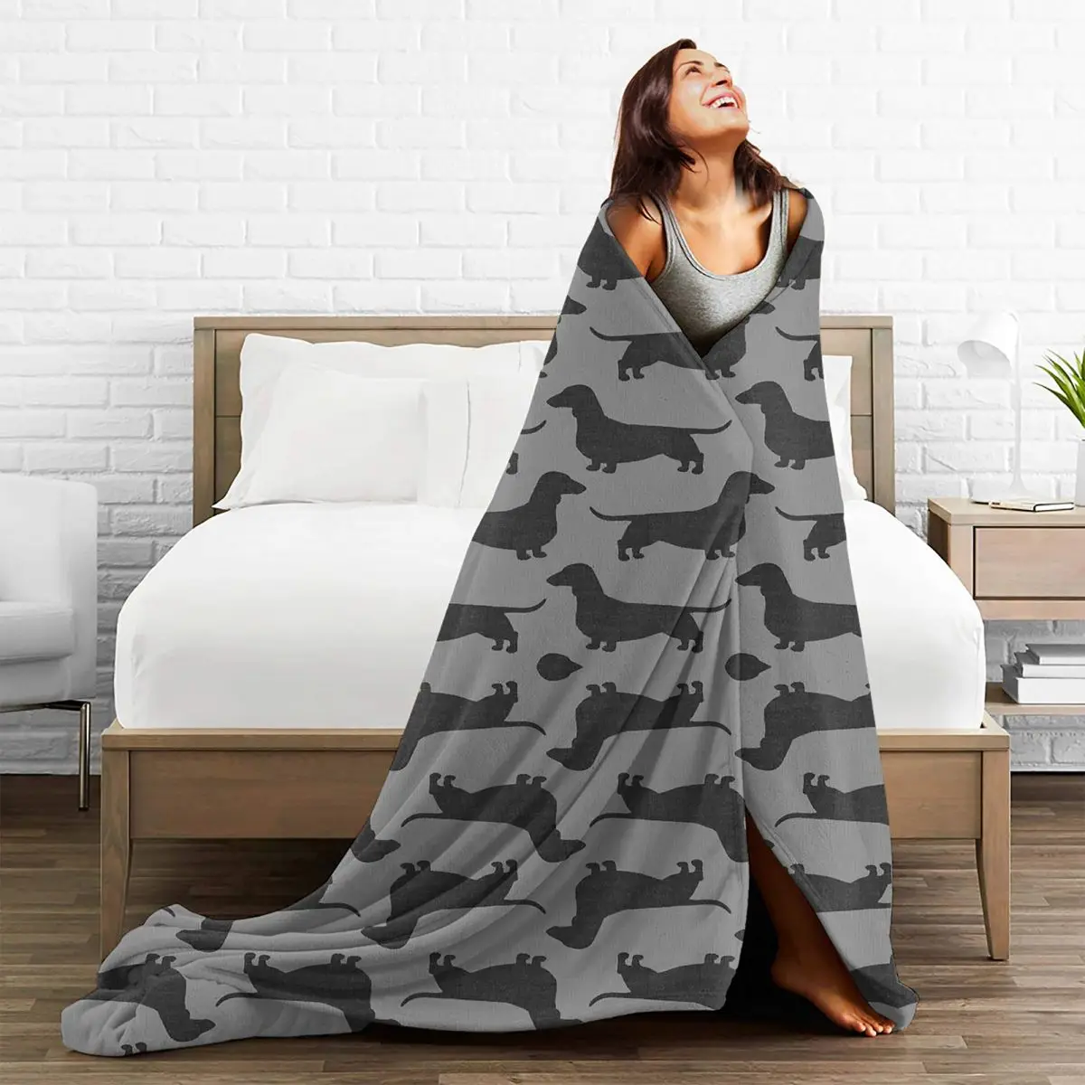 Фланелевое Одеяло с забавным 3d-рисунком таксы и собачьего силуэта, весеннееосеннее фланелевое одеяло, светящееся одеяло для сосисок, Doxie, дивана, токарного станка
