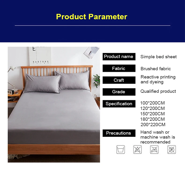 Цельная натяжная простыня из чистого хлопка, матовый нескользящий з...