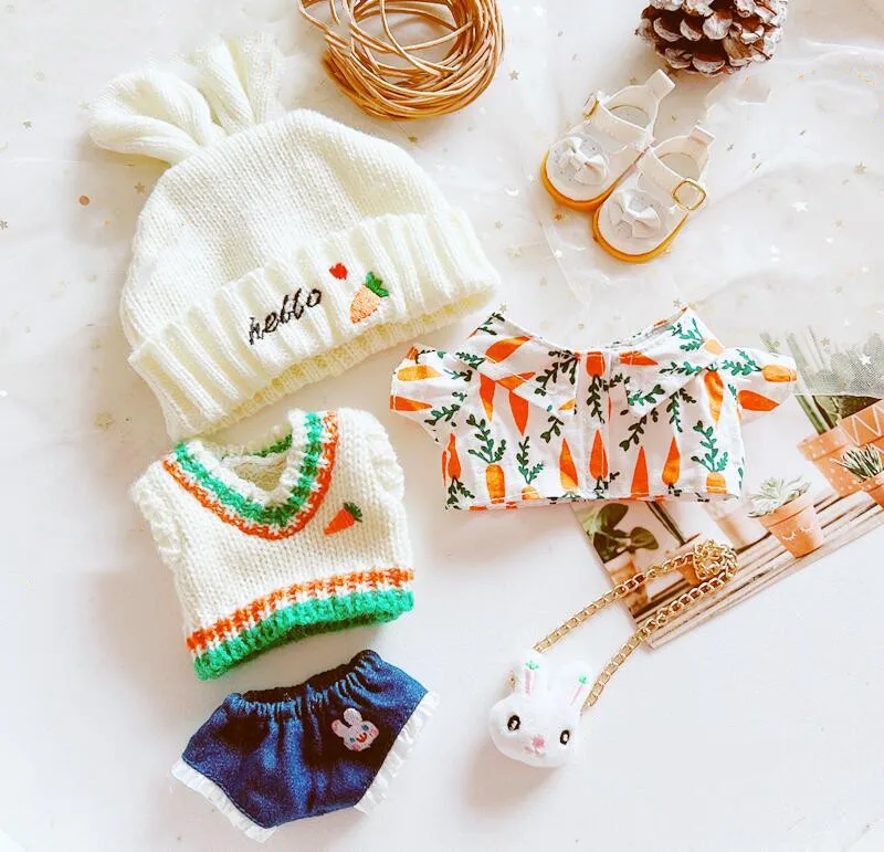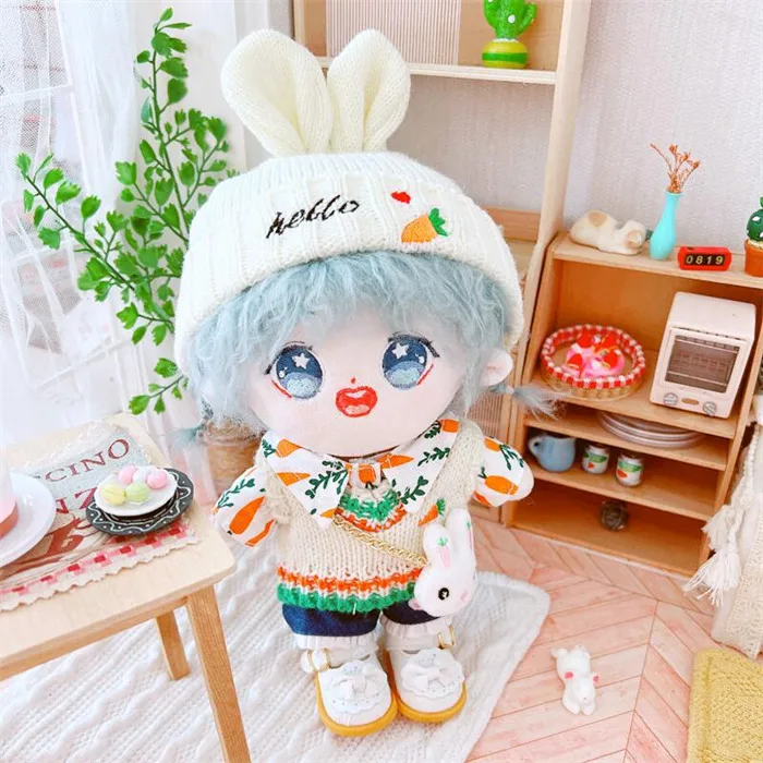 Одежда для кукол со звездами, 20 см, шерстяная шапка с белыми кроличьими ушками, костюм с морковкой, хлопковые набивные аксессуары для кукол 20 см
