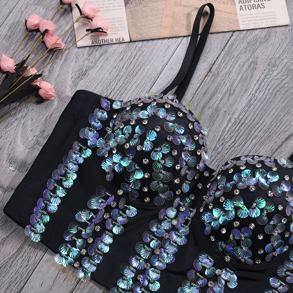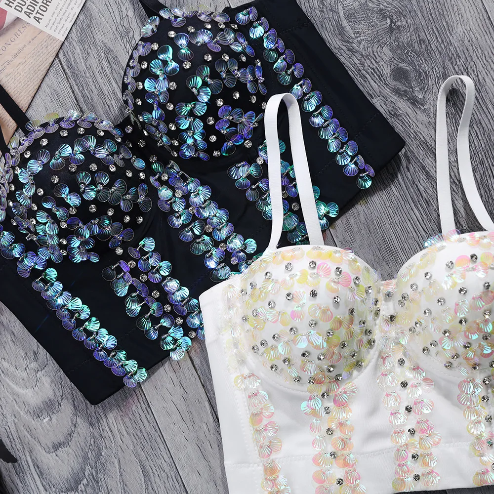 Великолепные Стразы, бюстье с бисером, топы с жемчужинами и ромбовидными узорами, бюстгальтер пуш-ап для ночного клуба, женский бюстгальтер, укороченный топ