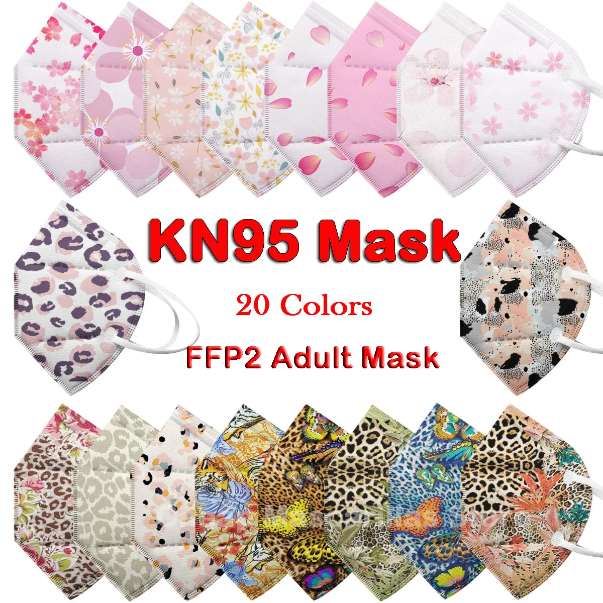 Маска ffp2 для взрослых, маска с цветочным принтом Kn95, многоразов...