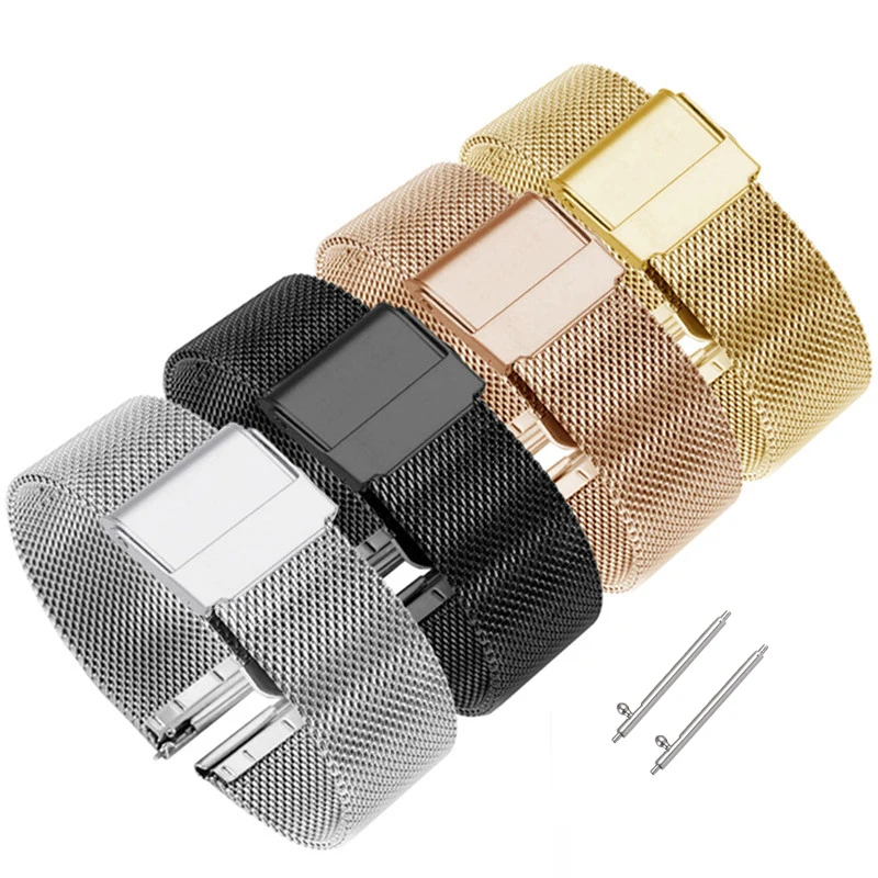 Ремешок Миланская петля из нержавеющей стали для мужчин и женщин, быстросменный металлический сетчатый Браслет для наручных часов, 121416182022 мм