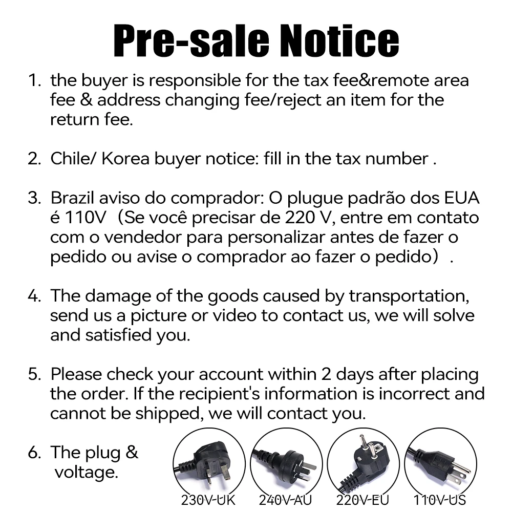 Страна: US Ships From: China Voltage: 220VEU Доставка: Standard Shipping 08.07.2022