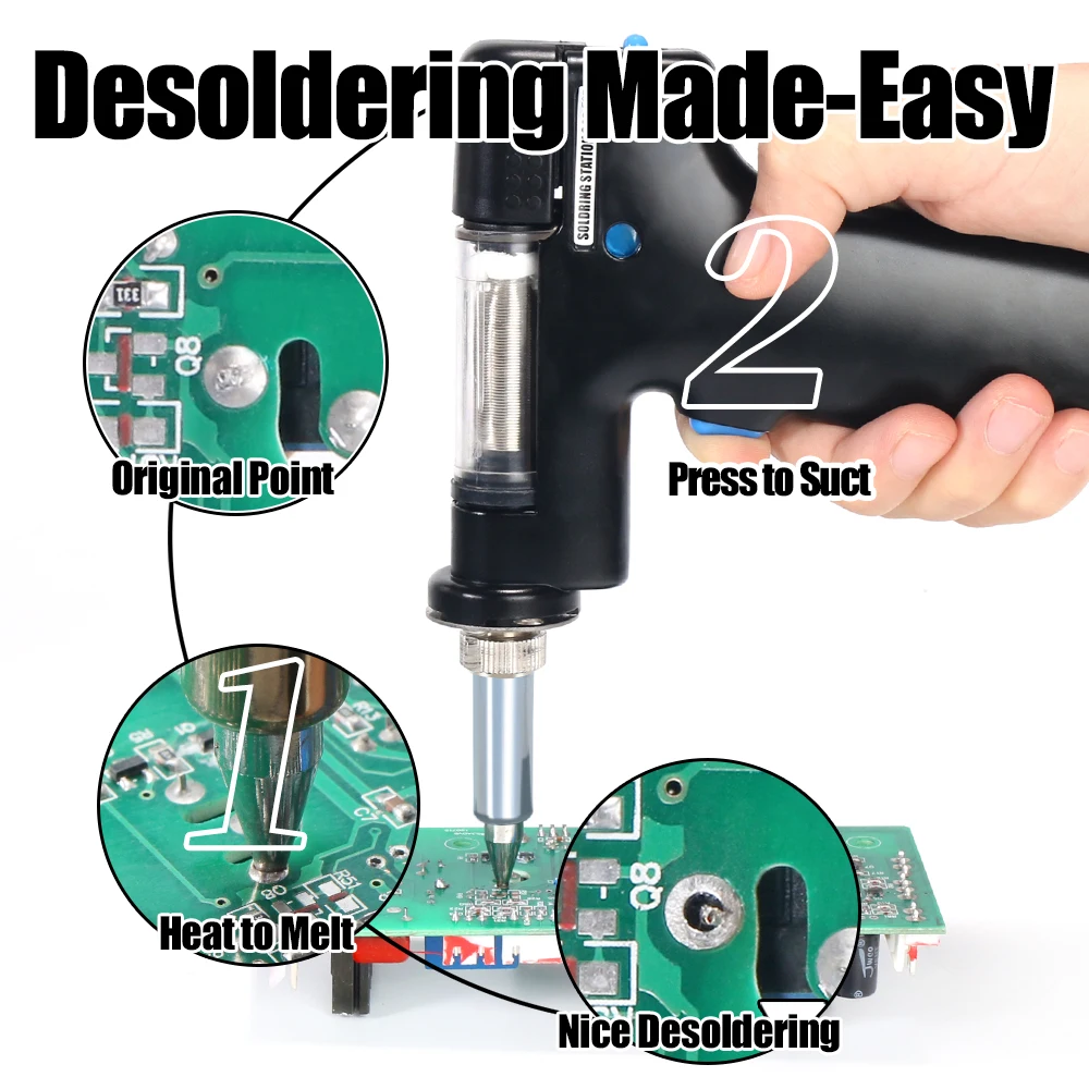 1. Перед распаковкой: вам нужно включить устройство, и ручка олова нагревается, чтобы растворить оловянный наконечник, а затем может сосать, чтобы высушить