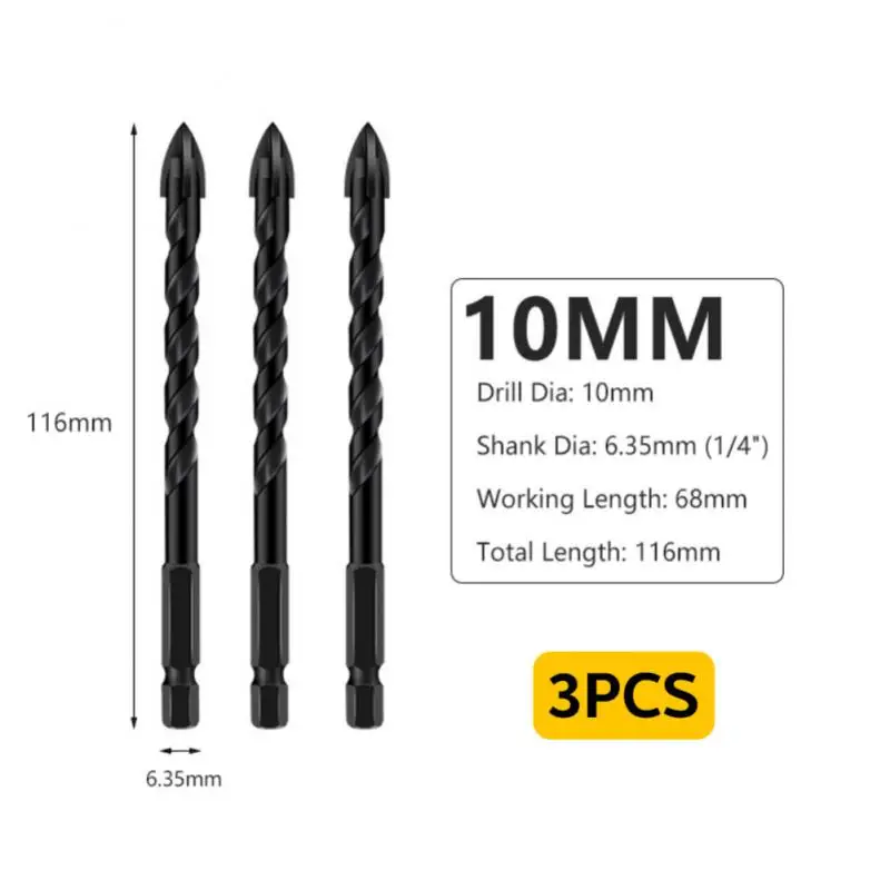 Профессиональные сверла для стекла и плитки обеспечивают плавное и точное сверление керамической плитки, мрамора, тонкой железной пластины, зеркал и стекла. Не забудьте добавить воду или охлаждающую жидкость при сверлении.