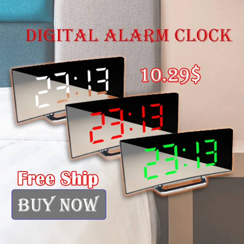 * Электронный будильник бесшумный дизайн цифровой светодиодный большой дисплей зеркало