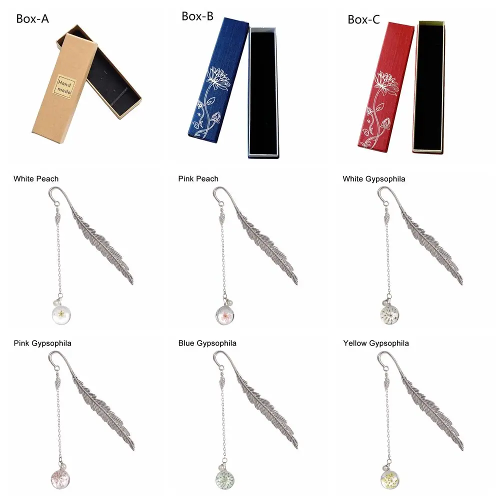Сушенный цветочный образца Закладка для книги Винтаж перо Металл кн...