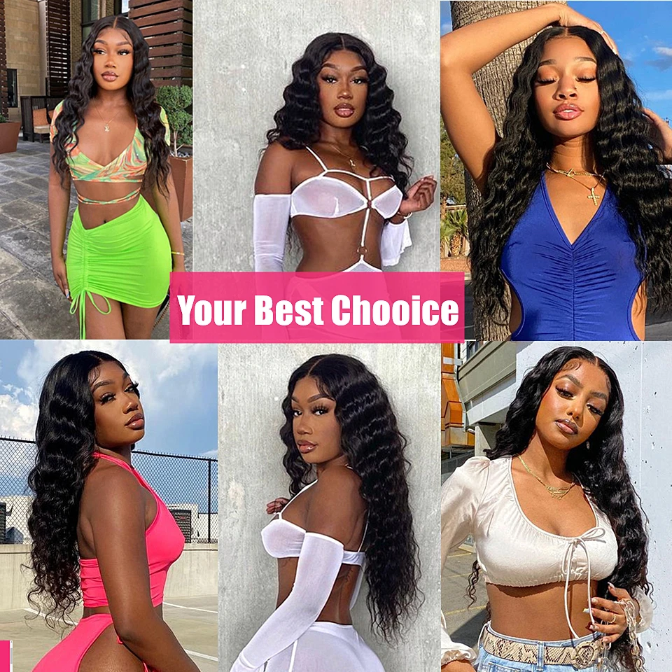 Deep Wave Closure WigHuman Hair Lace Frontal Wigs