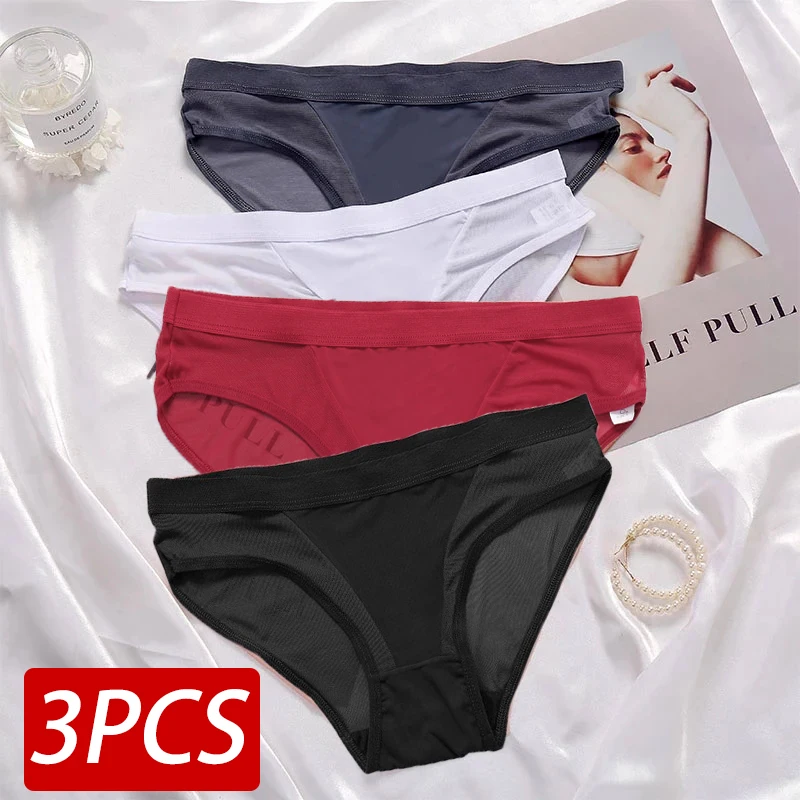 3 шт., Женские Бесшовные прозрачные трусы с заниженной талией