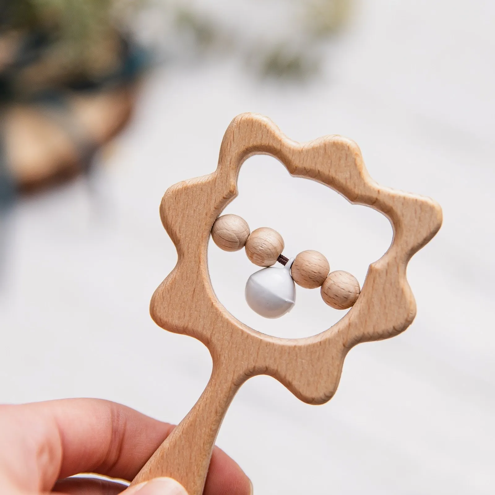 Детская деревянная погремушка, деревянное кольцо-прорезыватель из бука по индивидуальному заказу, детские погремушки, музыкальная игрушка Монтессори, Детские Игрушки для раннего развития, подарки