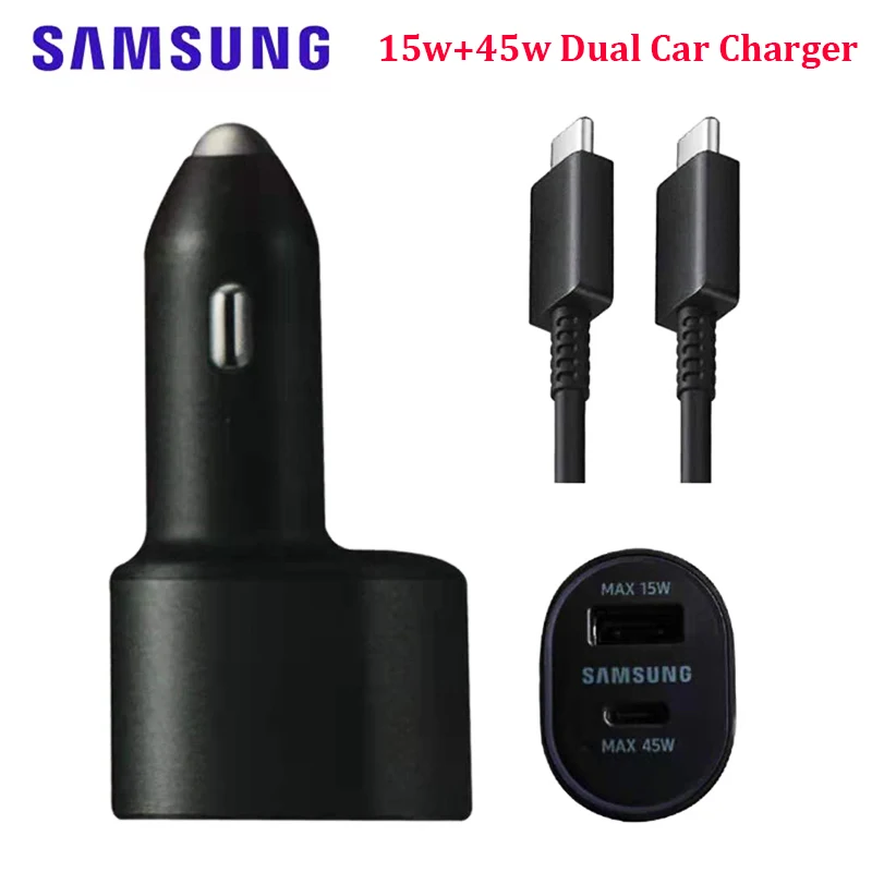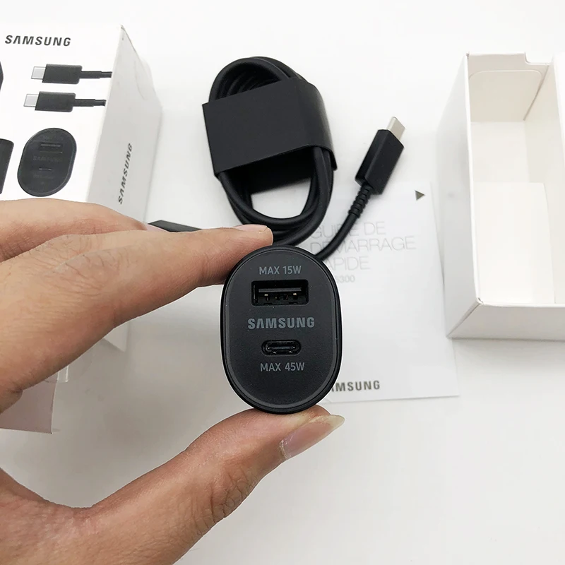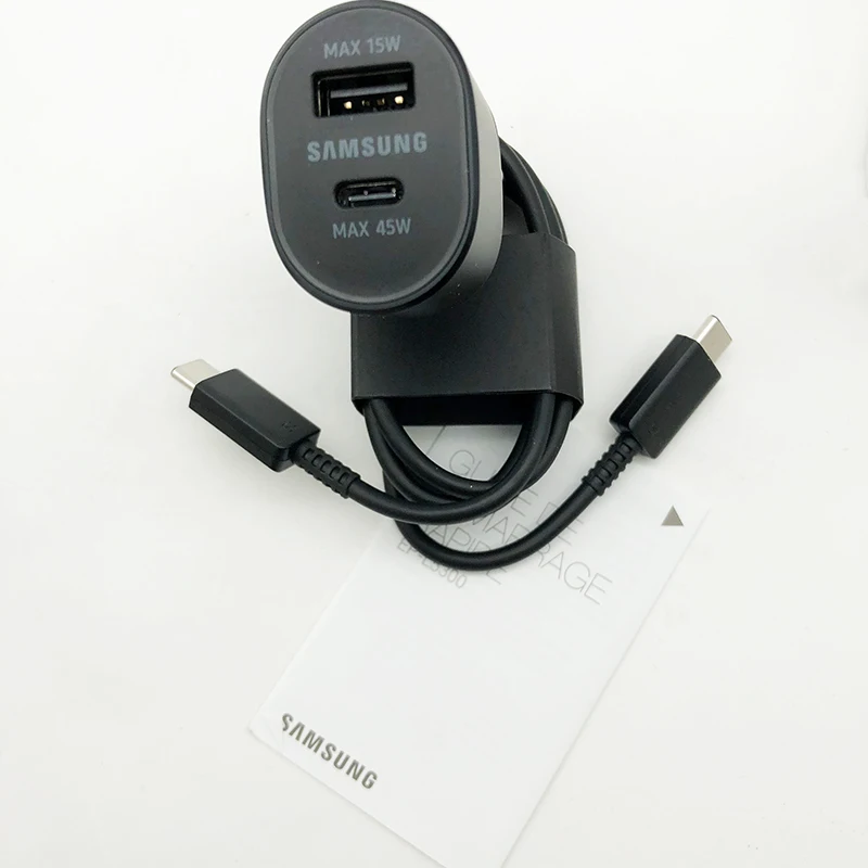 Оригинальное автомобильное зарядное устройство Samsung 45 Вт + 15 Вт с двумя портами, адаптивный супер быстрый адаптер для Galaxy S10 9 S20 S21 Plus S10 + Note20 Fold2