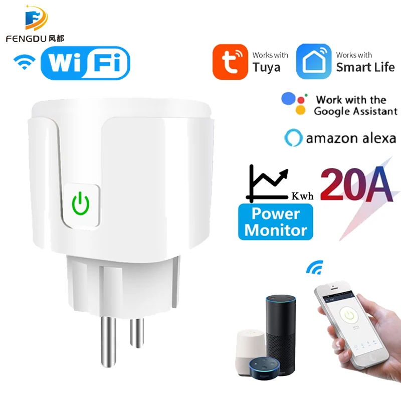 Умная штепсельная вилка Tuya Wifi умная розетка EU 20A с функцией таймера питания, работает с Alexa Google Home