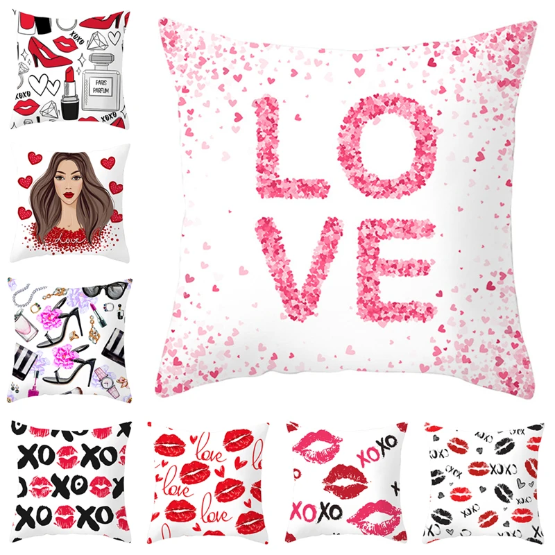 Декоративная наволочка на день святого Валентина, 45x45, подушки для дивана, декоративная наволочка, полиэстер, губы для девочек, буквенный принт, автомобильный домашний текстиль