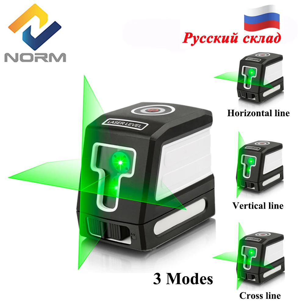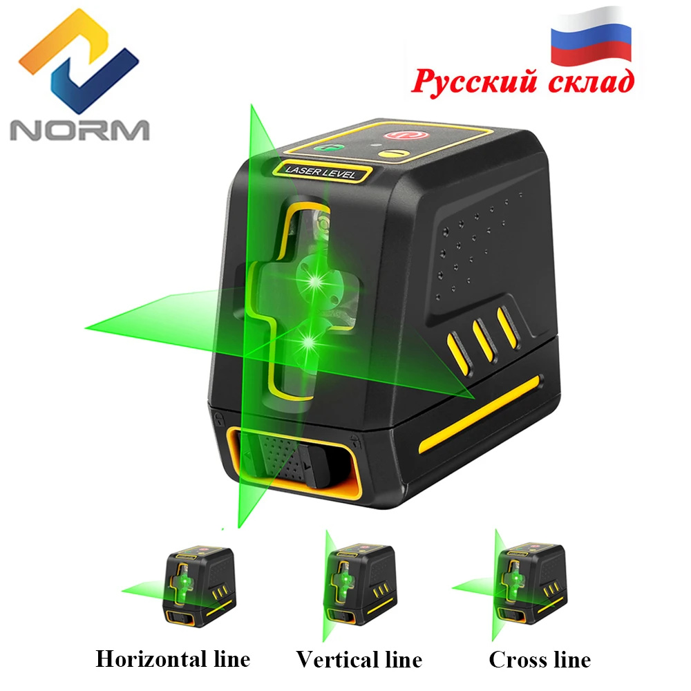 Лазерный уровень Norm, самонивелирующийся нивелир зеленогокрасного цветов с вертикальными и горизонтальными линиями