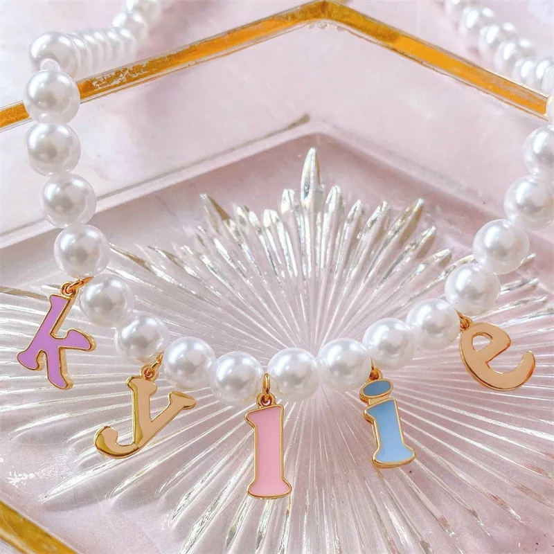 Индивидуальное ожерелье с именем для женщин, цепочка с имитацией жемчуга, индивидуальная яркая эмалированная буква, минималистичное свадебное обручальное ювелирное изделие