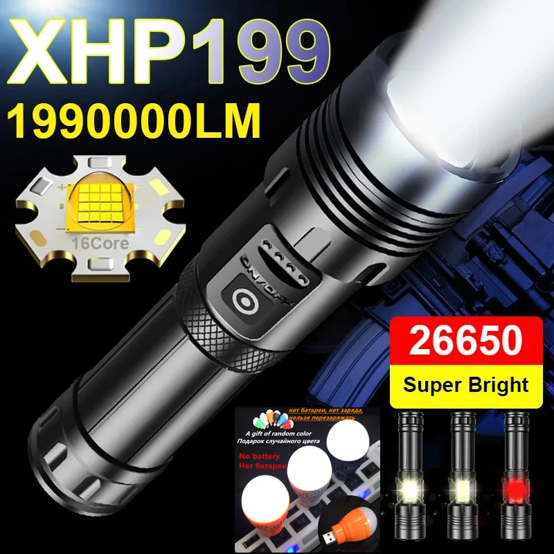Супер яркий Мощный светодиодный фонарик XHP199, перезаряжаемый от USB фонарик 18650, Мощный тактический фонарь COB с магнитом
