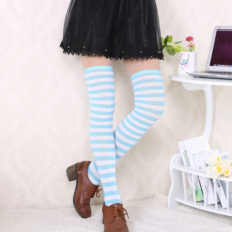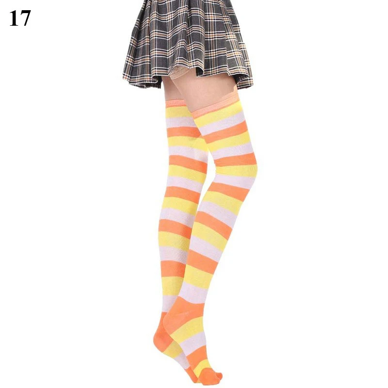 Женские гетры-чулки, гольфы в японском стиле, носки до бедер, высокие полосатые носки, цветные полосатые носки, Классические Полосатые цветные носки