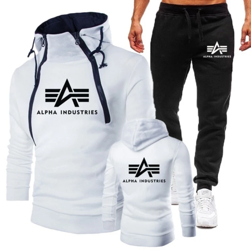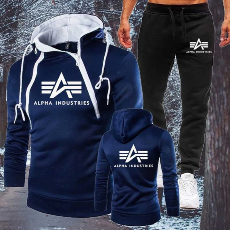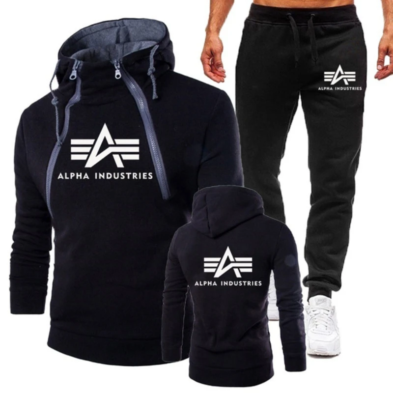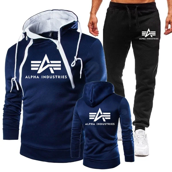 2022 мужской повседневный костюм Alpha с длинным рукавом, тонкая Толстовка на двойной молнии + спортивные брюки, 3 цвета, приблизительно.
