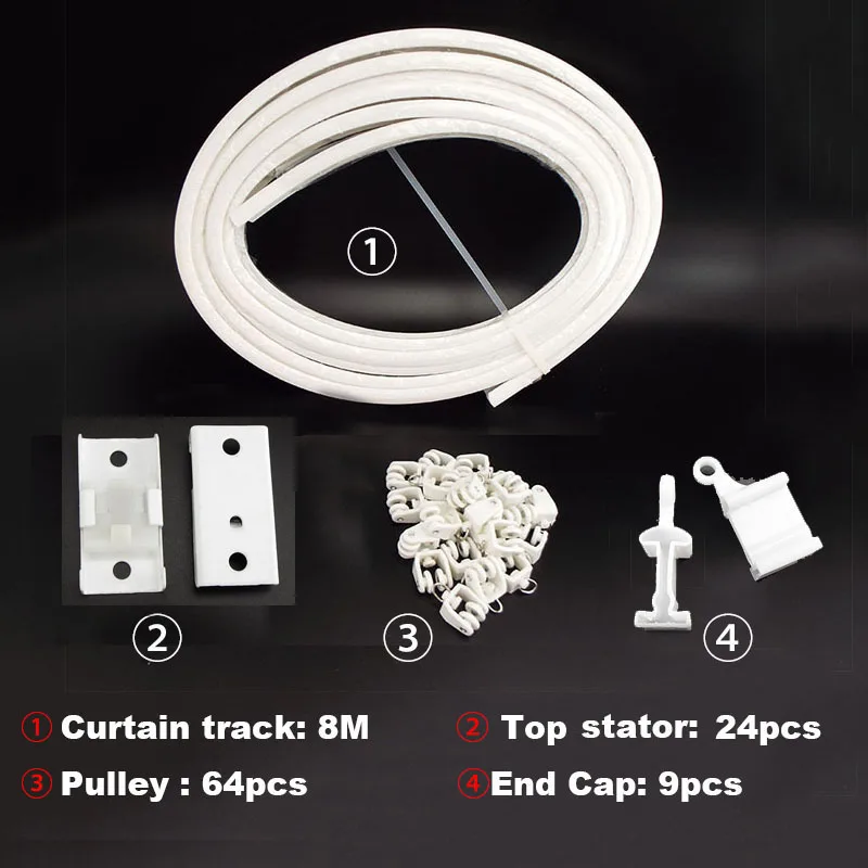 Посылка включает в себя: 1 комплект рельсов для штор (винт в комплект не входит)