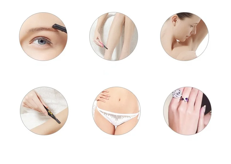 Дизайн для бритья волос на теле, таких как брови, уши, волосы, руки, ноги и лишние волосы.