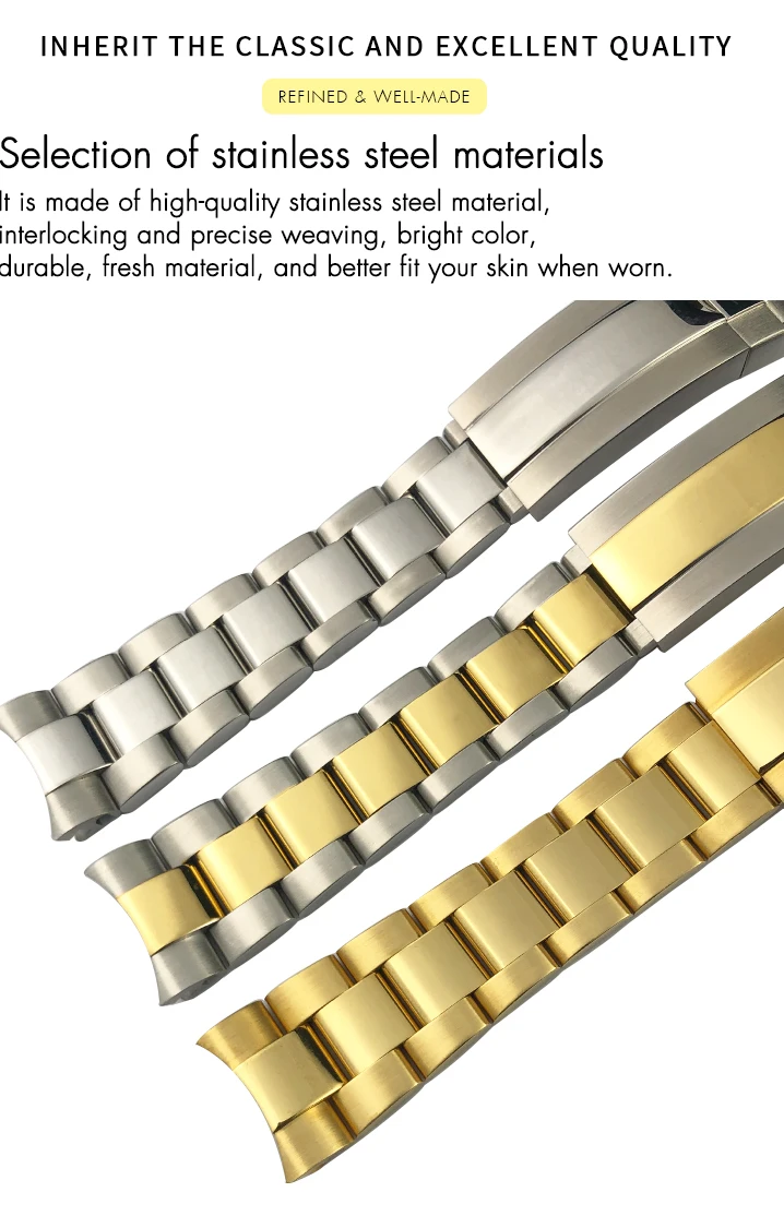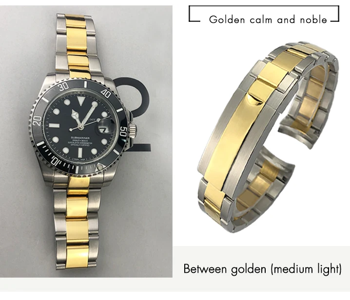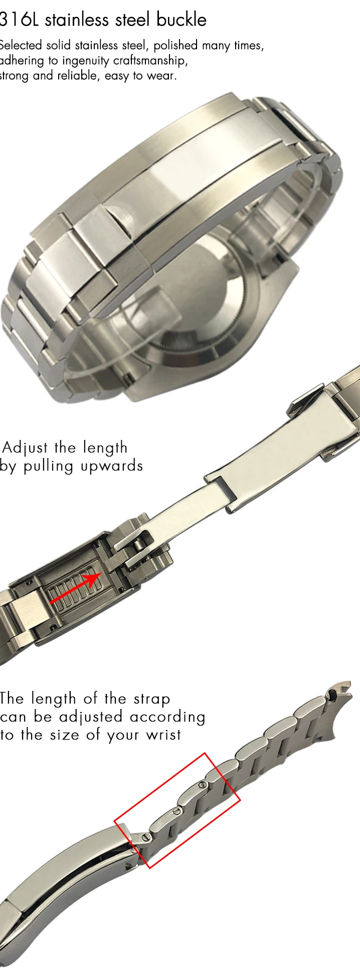 Ремешок из нержавеющей стали 316L для часов, изогнутый браслет для часов Rolex Submariner с тонкой настройкой, с застежкой, 20 мм
