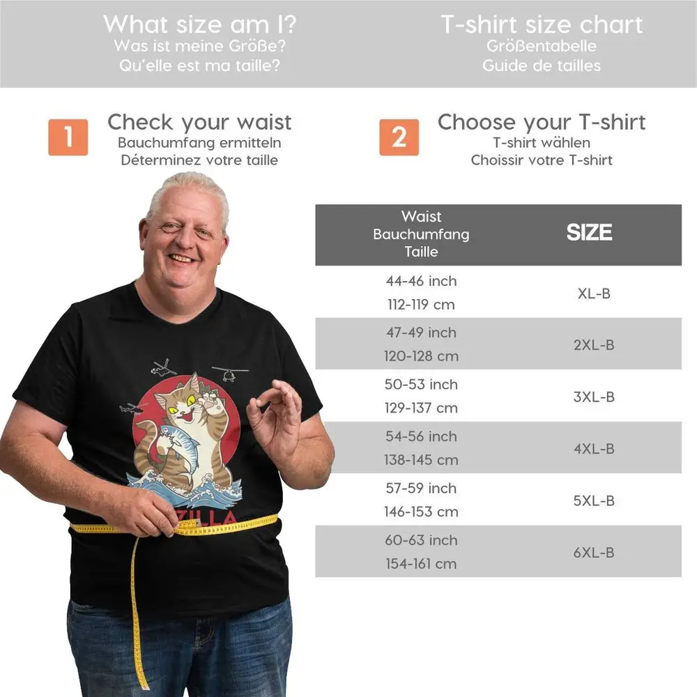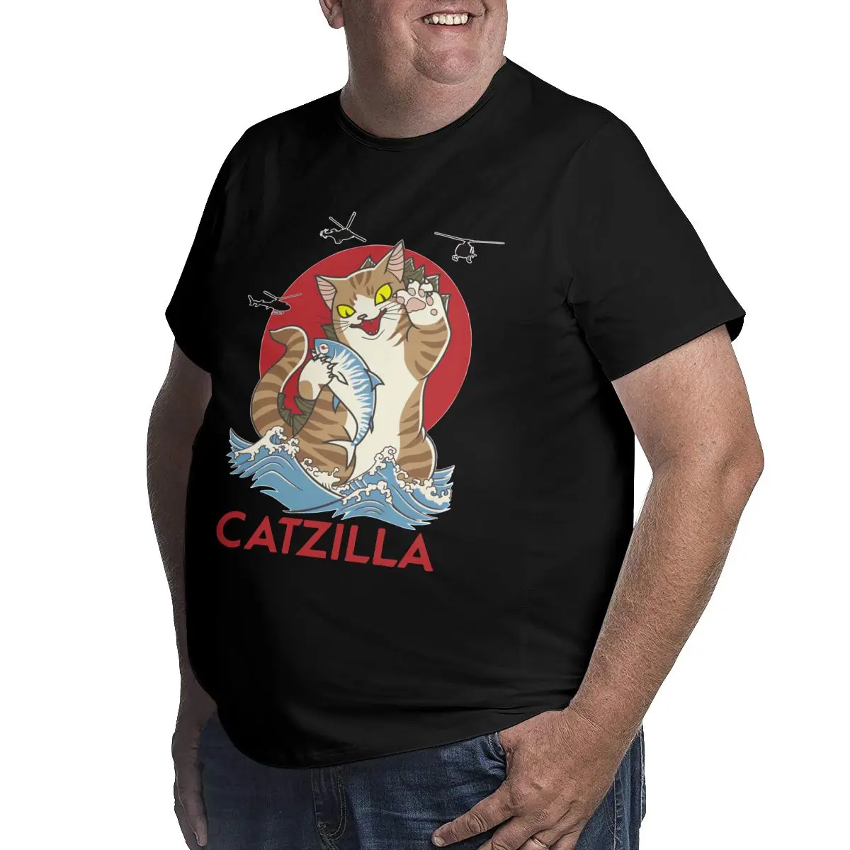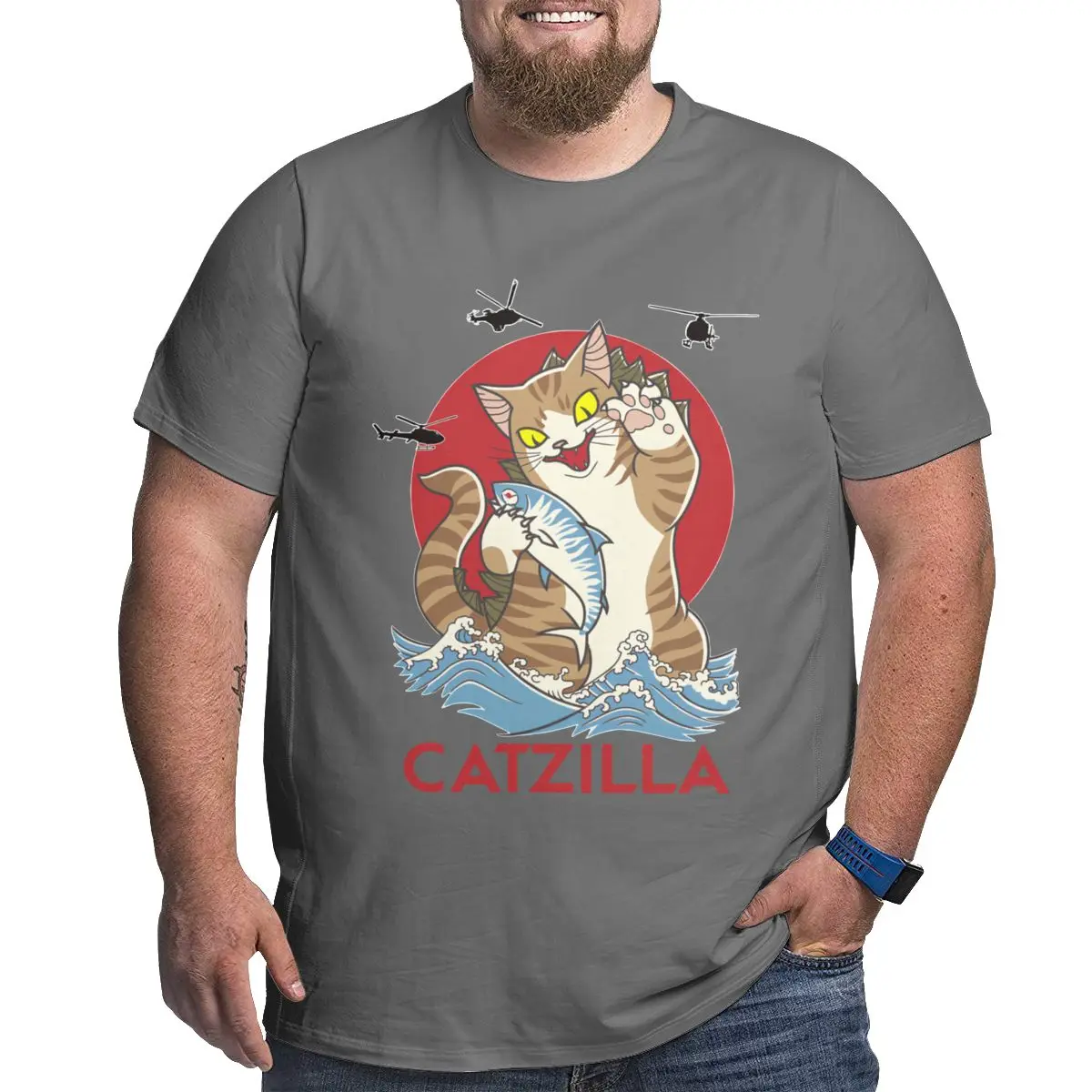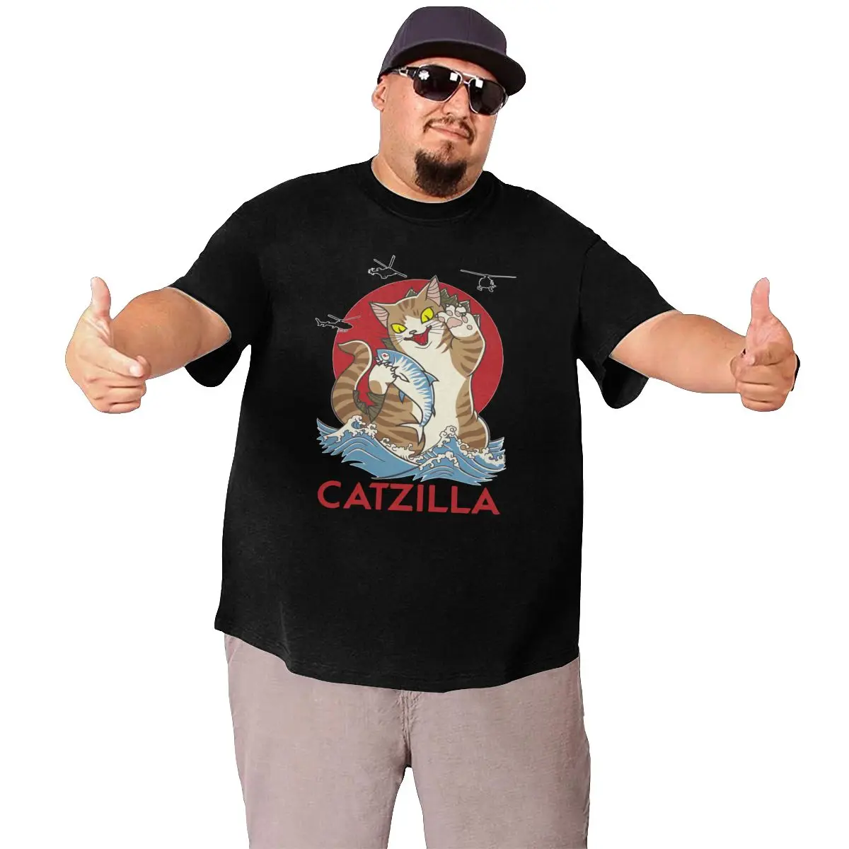 Футболка Catzilla с изображением кошки японских монстров, Мужская футболка из 100% хлопка, футболка большого размера, топы большого размера 4XL, 5XL, 6XL