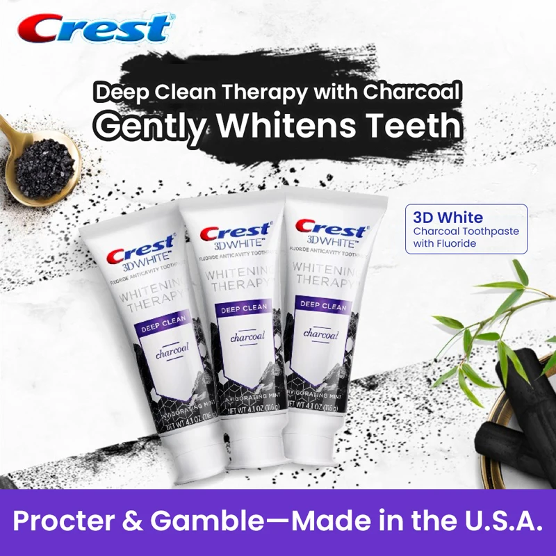 Зубная паста Crest с древесным углем, насыщенная пена, древесный уголь, Глубокая очистка, терапия, свежее дыхание, 3D, Мягкая Белая зубная паста, усиление эмали, 116 г