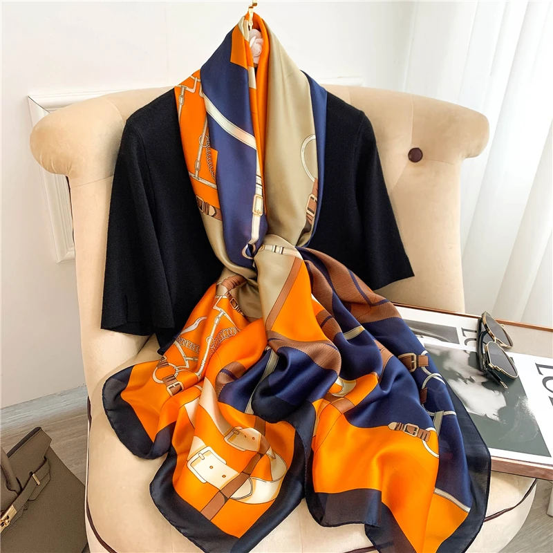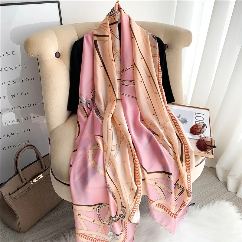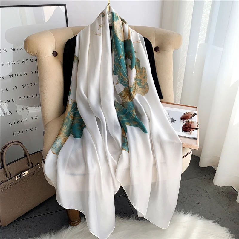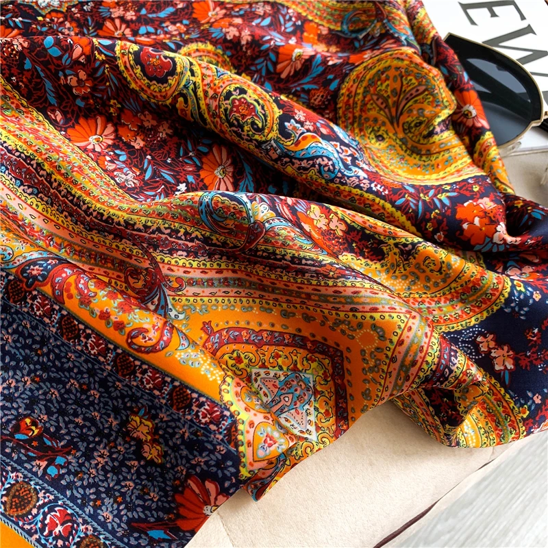 Бандана, хиджаб для женщин, Шелковый Атласный принт, большая Пашмина 180*90 см, шаль, накидка, элегантные пляжные палантины, новый дизайн 2022