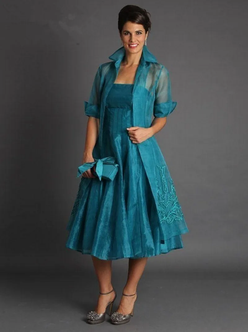 Трапециевидные платья для матери невесты с жакетом длиной ниже колена тюлевые аппликации размера плюс Короткие свадебные платья для матери жениха