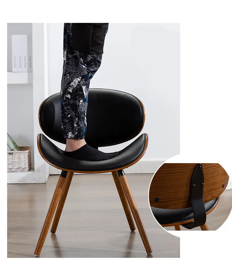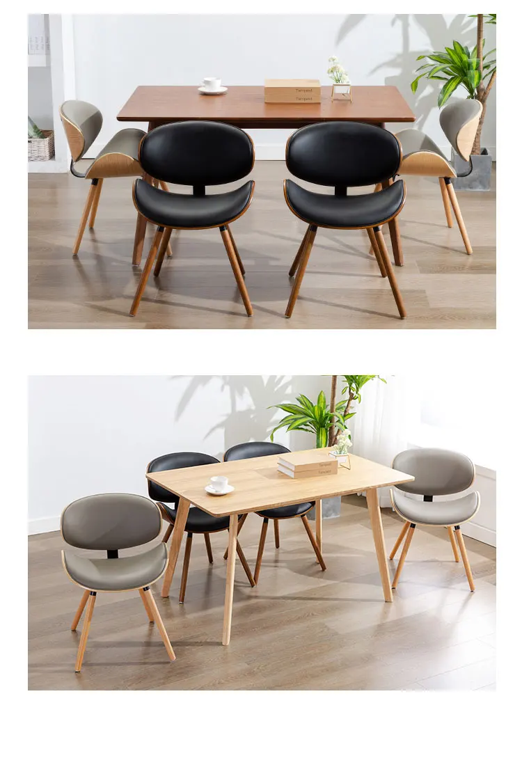 Европейский современный простой семейный стул из твердой древесины для квартиры, практичный обеденный стул из твердой древесины и кожи