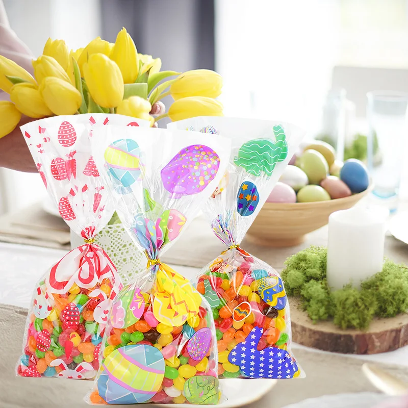 50 шт., подарочный пакет с кроликом, пластиковый пакет с Банни, яйцами, морковкой, конфетами, для детей, для дня рождения, вечеринки, украшения для пасхи