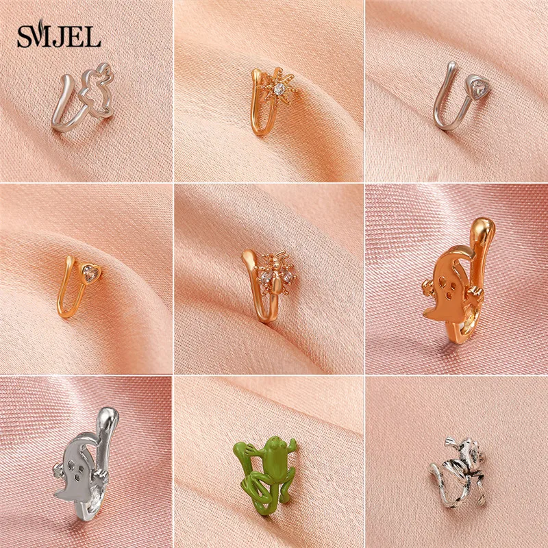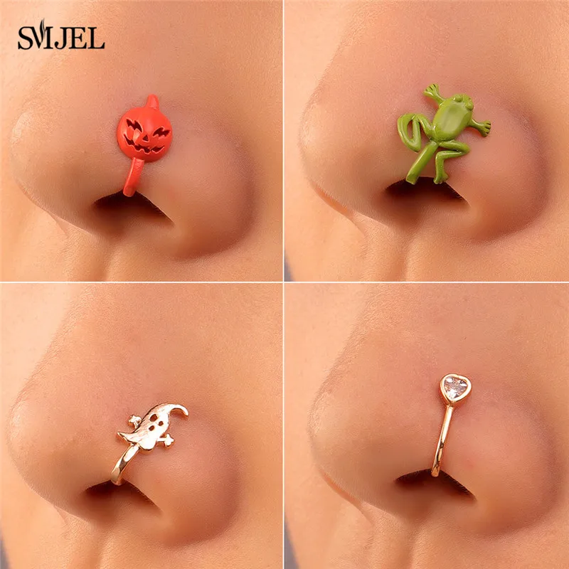 1 шт., металлическое кольцо для имитации пирсинга в носу, клипса в виде кролика, призрака, мультяшной лягушки на носу, ухо, клипса, серьги для женщин, девушек, подарок, бижутерия для тела