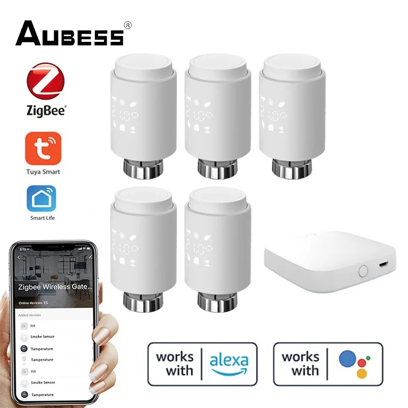 Умный привод радиатора Aubess ZigBee 3,0 Tuya, программируемый термостатический клапан радиатора, регулятор температуры Alexa Google Home