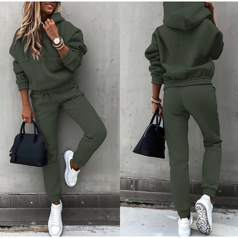 Осенне-зимний спортивный костюм с капюшоном, Женский Теплый однотон...