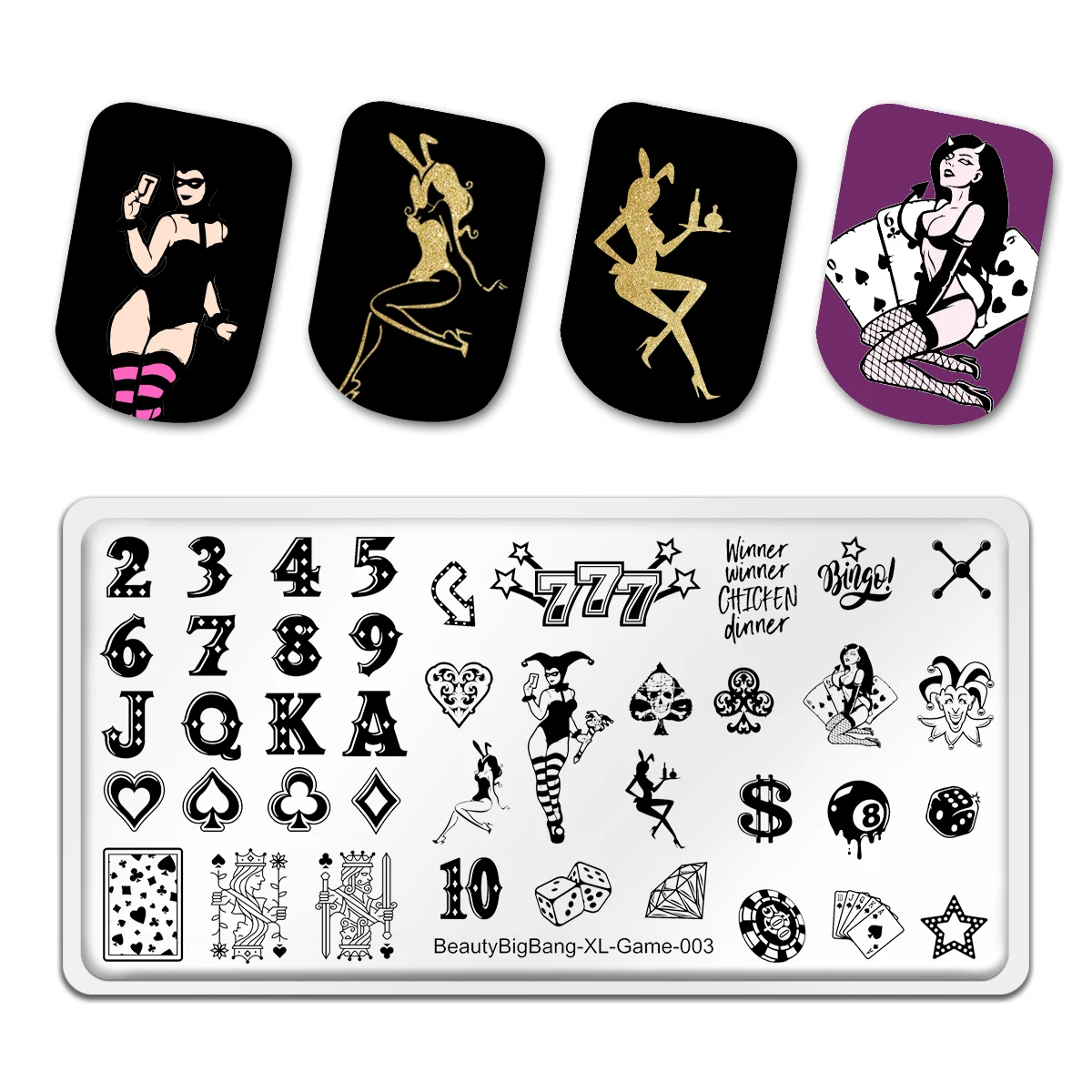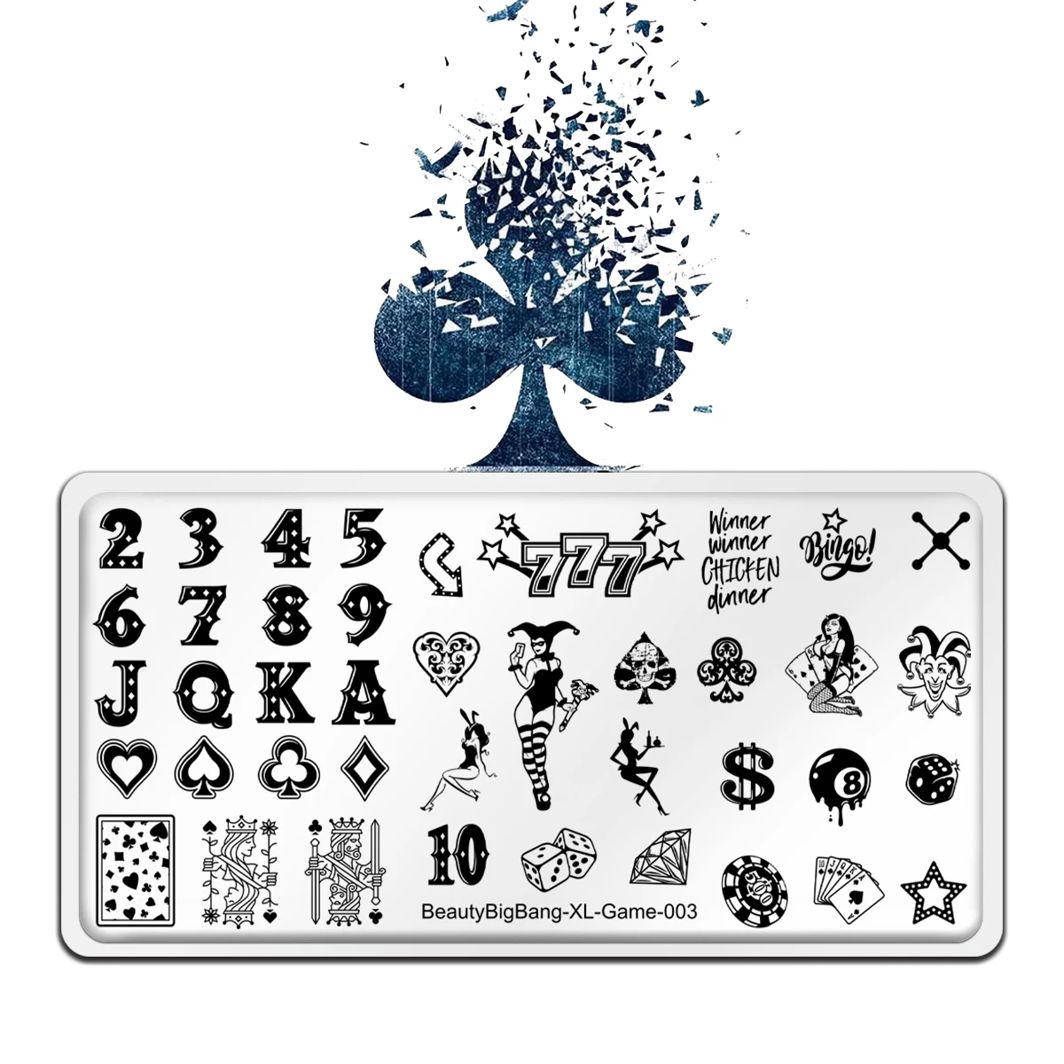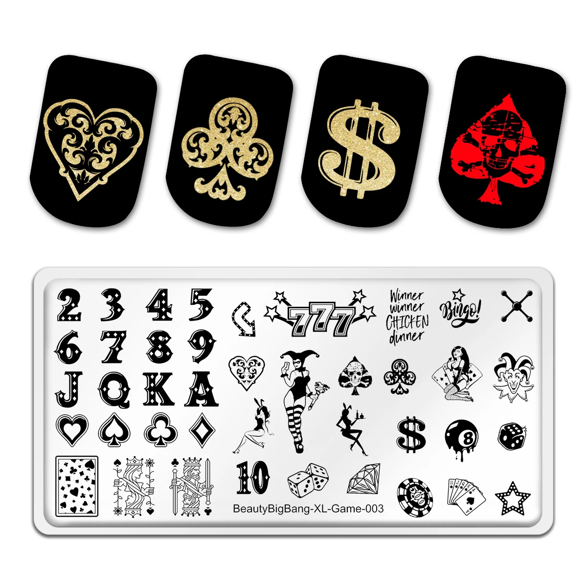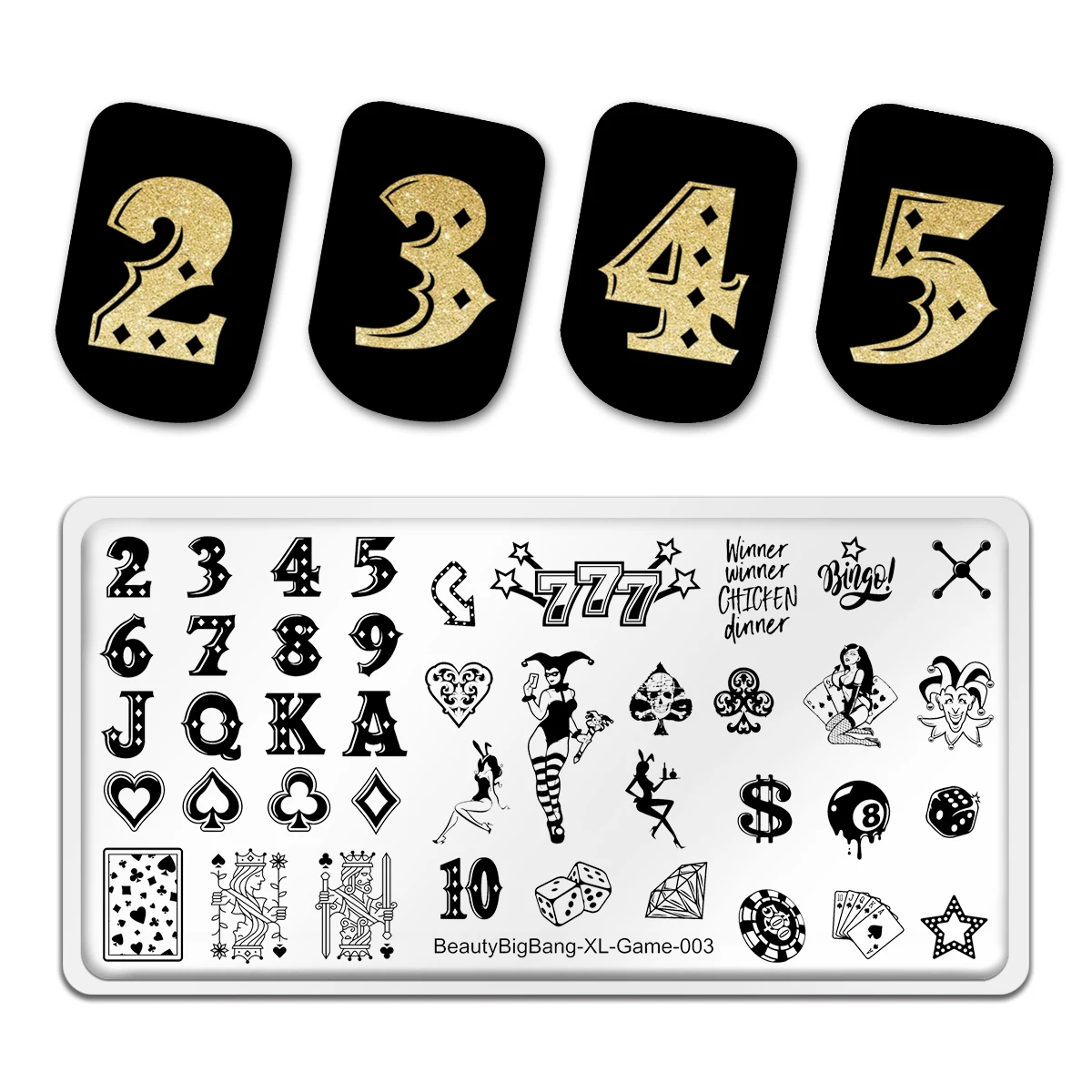 Трафареты BeautyBigBang с номерами для покерной игры для девочек, тематические штамповочные пластины для ногтей, штамповка для ногтевого дизайна из нержавеющей стали, размеры XL-Game -003