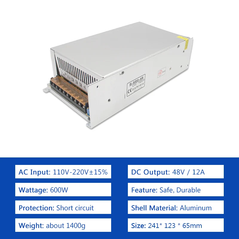 Импульсный источник питания HTHwish, 48 В, 12 а, от 220 В до 48 В, 600 Вт, трансформатор переменного тока в постоянный ток, Светодиодный драйвер для светодиодной ленты, системы видеонаблюдения
