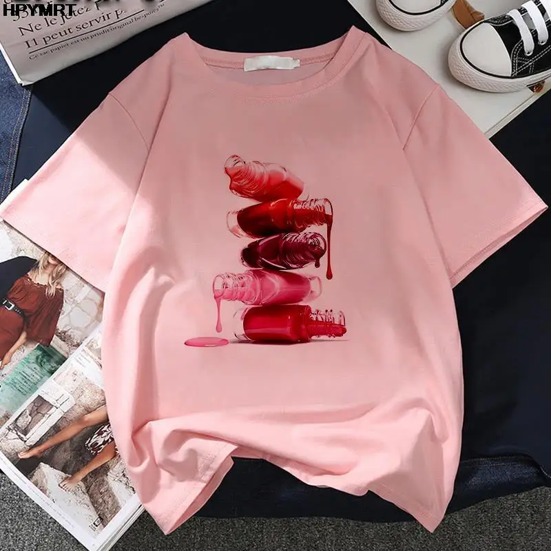Женская футболка с принтом губ и губной помады, Женская Футболка Ha...