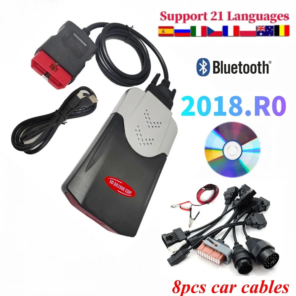 Новейший диагностический сканер Obd 2018 R0 2017.R3, новый VCI Tcs Vd DS150E Cdp Bluetooth USB для автомобиля дельфина, грузовика, светодиодный 3-в-1 диагностический инструмент для ремонта