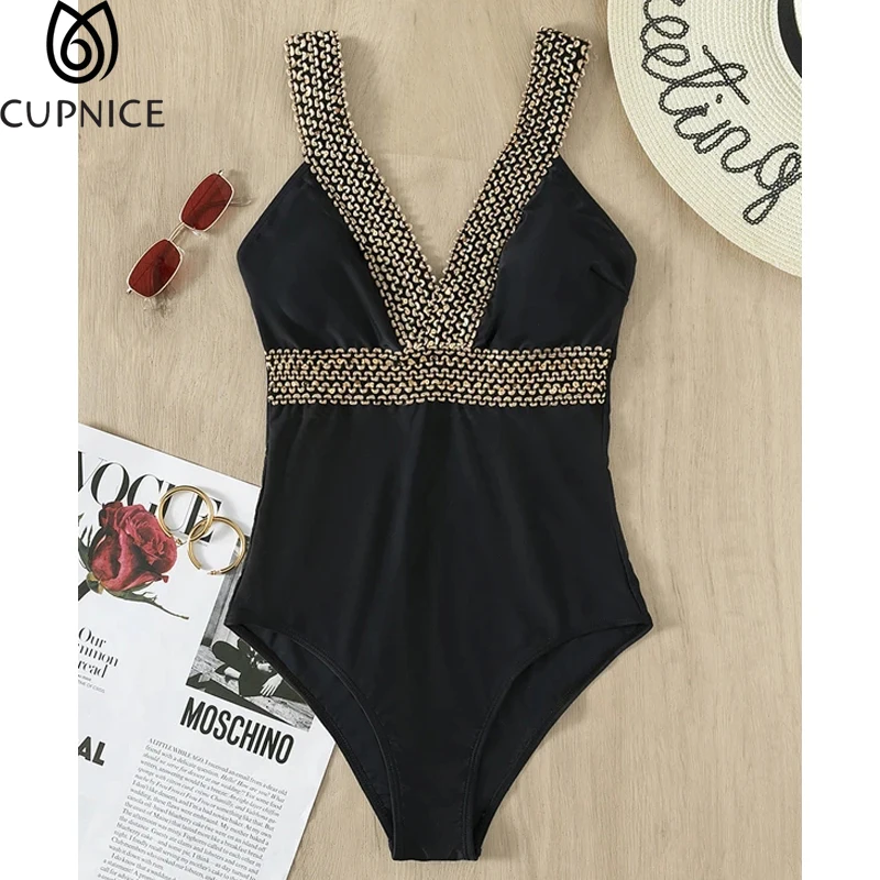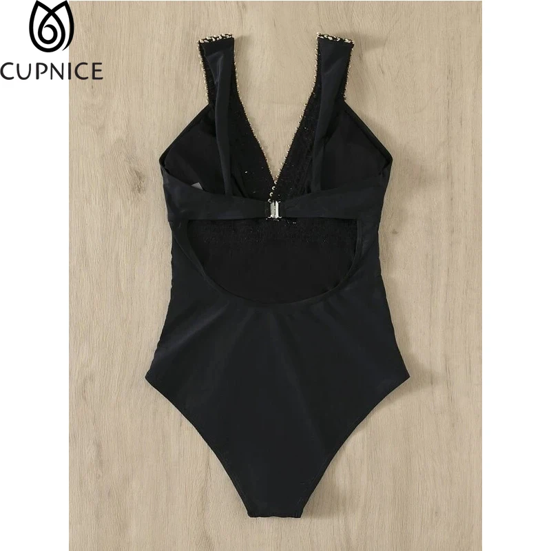 Слитный купальник с глубоким вырезом, женский сексуальный черный купальник с V-образным вырезом, однотонный, с открытой спиной, контрастная отделка