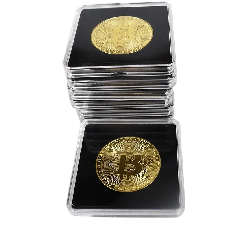 40 мм Золотая монета биткоина с акриловым квадратным чехлом, Liteco...