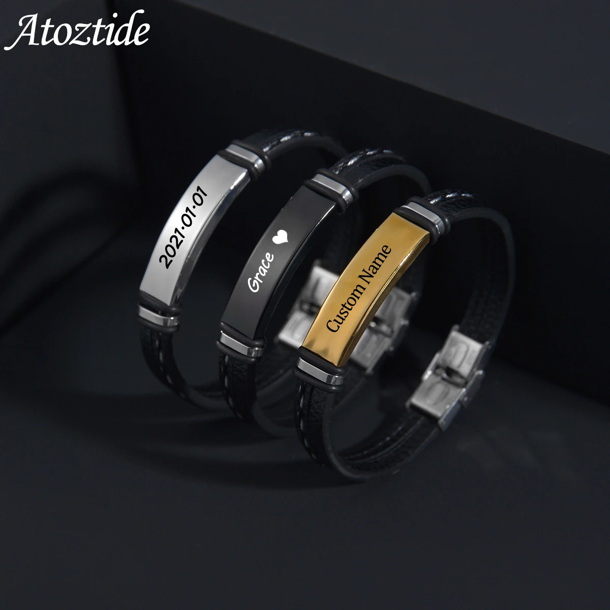 Название:Atoztide индивидуальные гравировка имя текст браслеты из нержавеющей стали кожаный цепной браслет для мужчин женщин персонализированный подарок ювелирные изделия