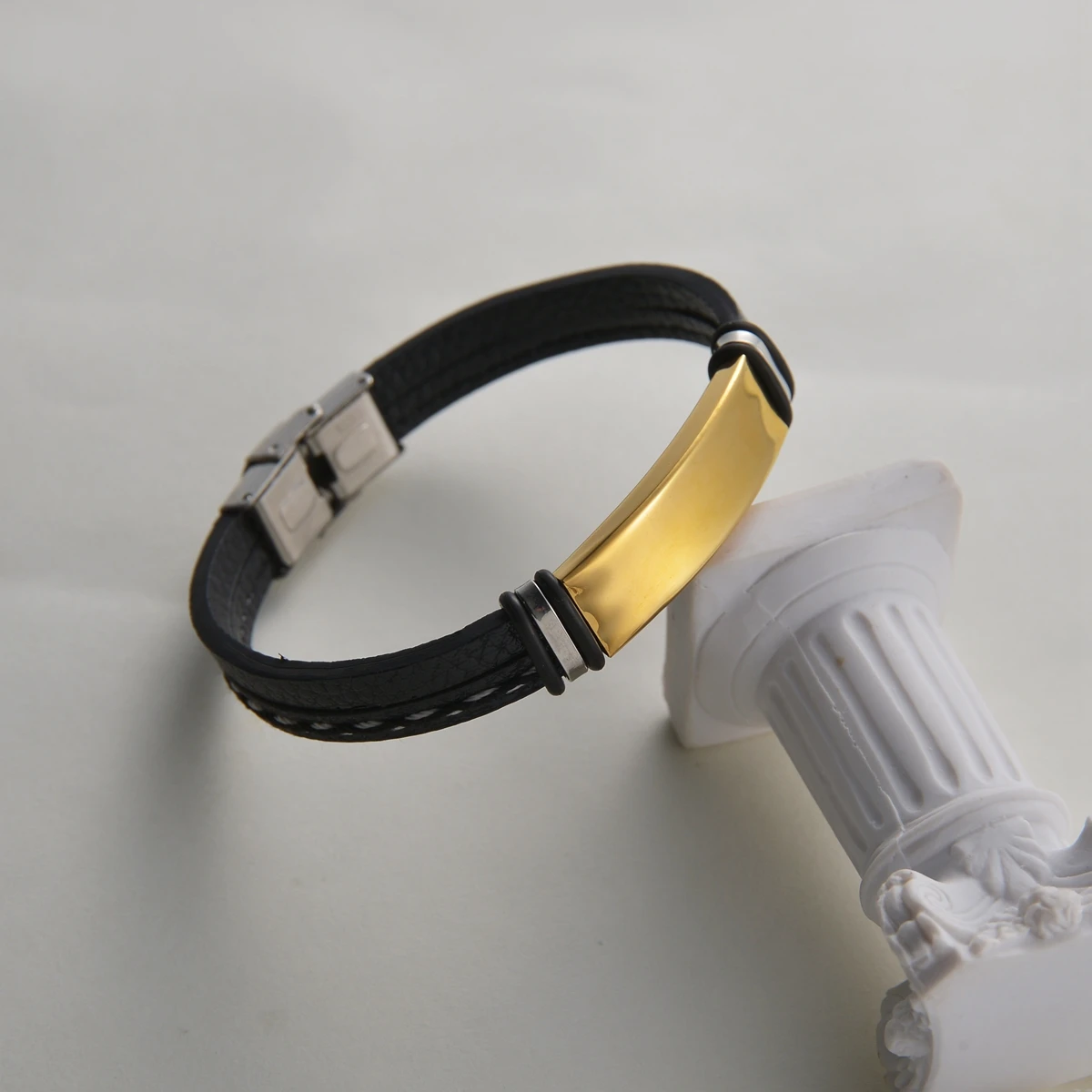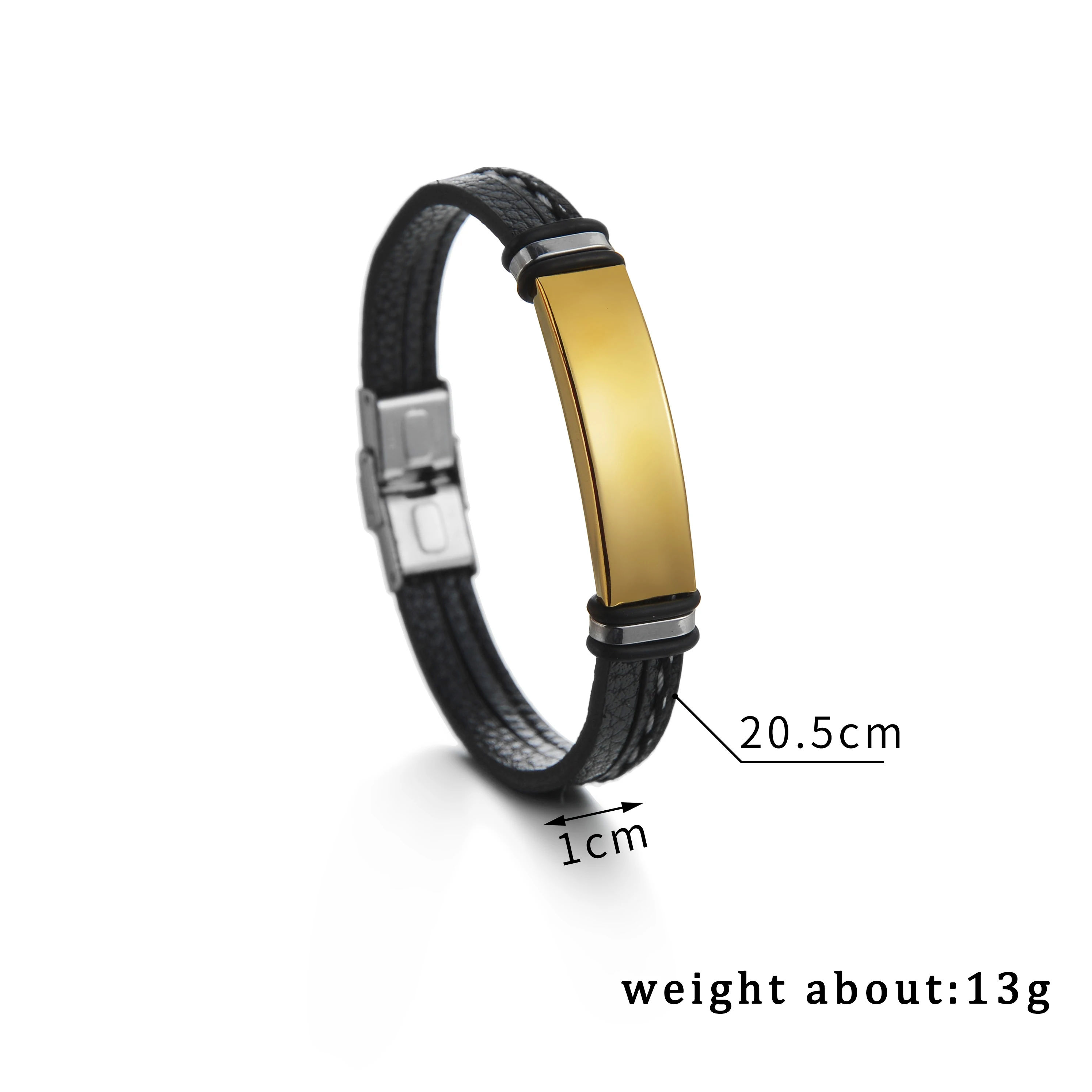 Мужские и женские браслеты из нержавеющей стали с кожаной цепочкой и гравировкой имени