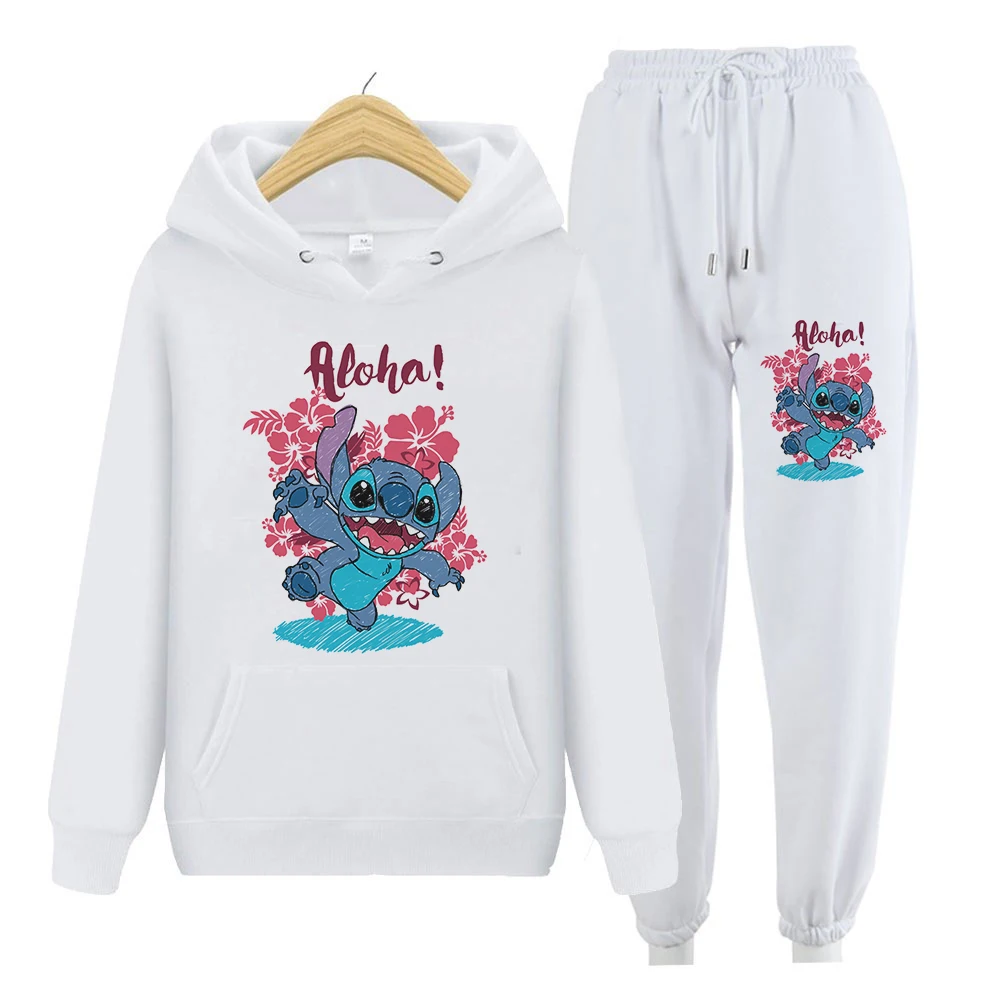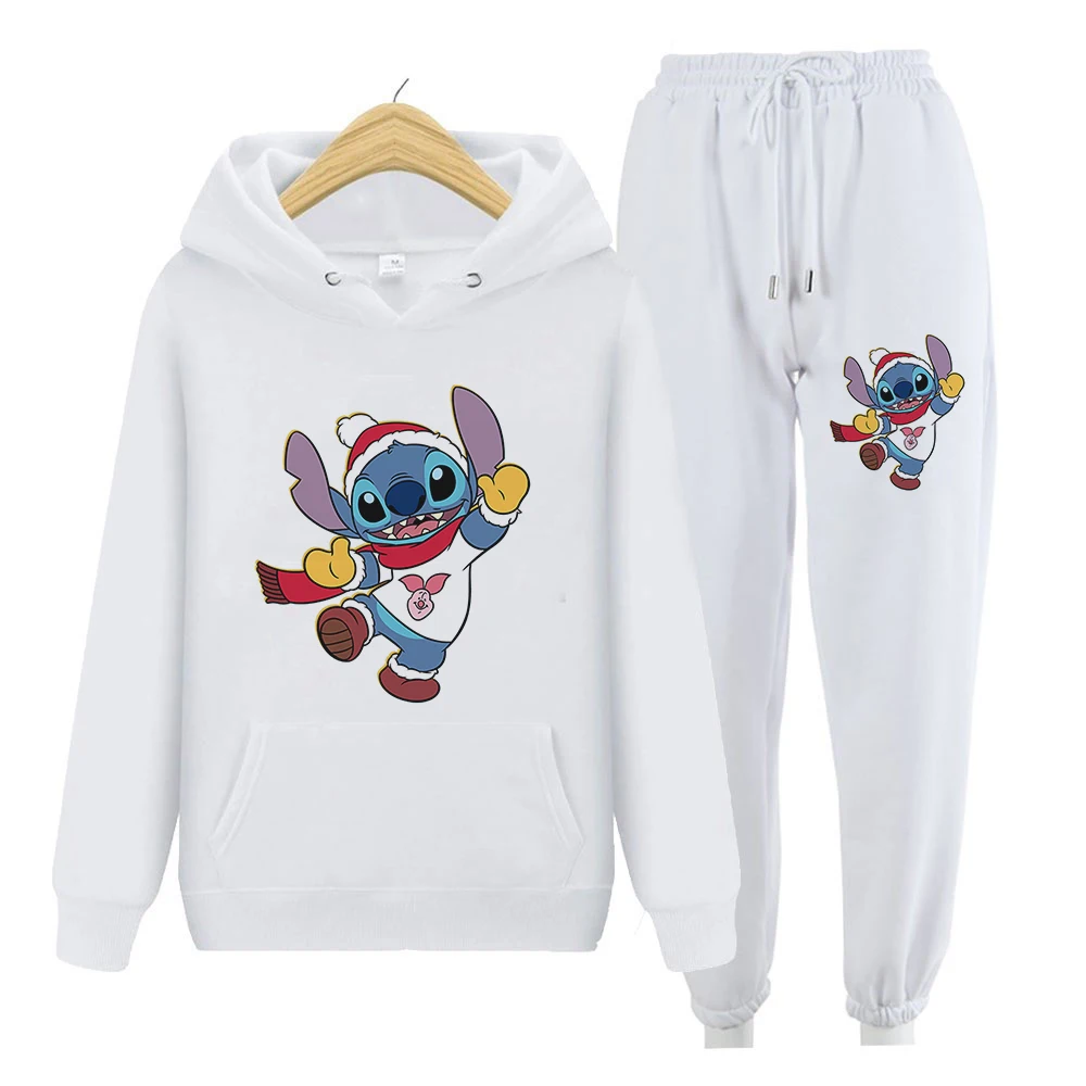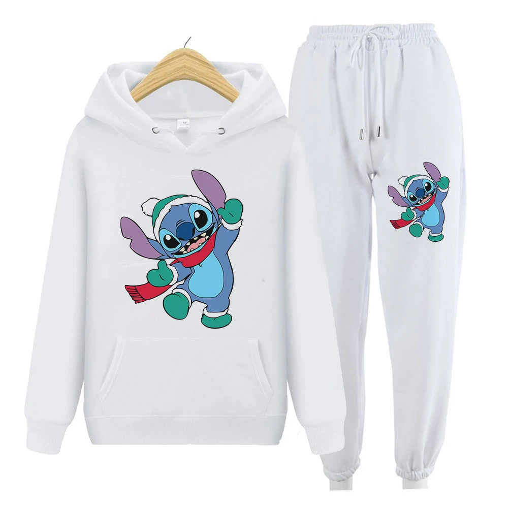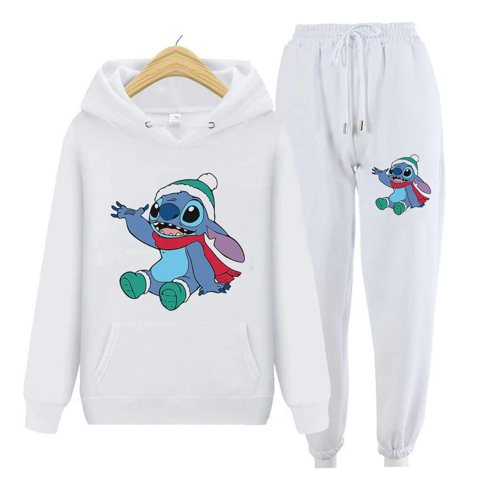 Женский костюм из двух предметов, толстовка с капюшоном и брюки с длинными рукавами и молнией, повседневные брюки для бега, Disney Stitch