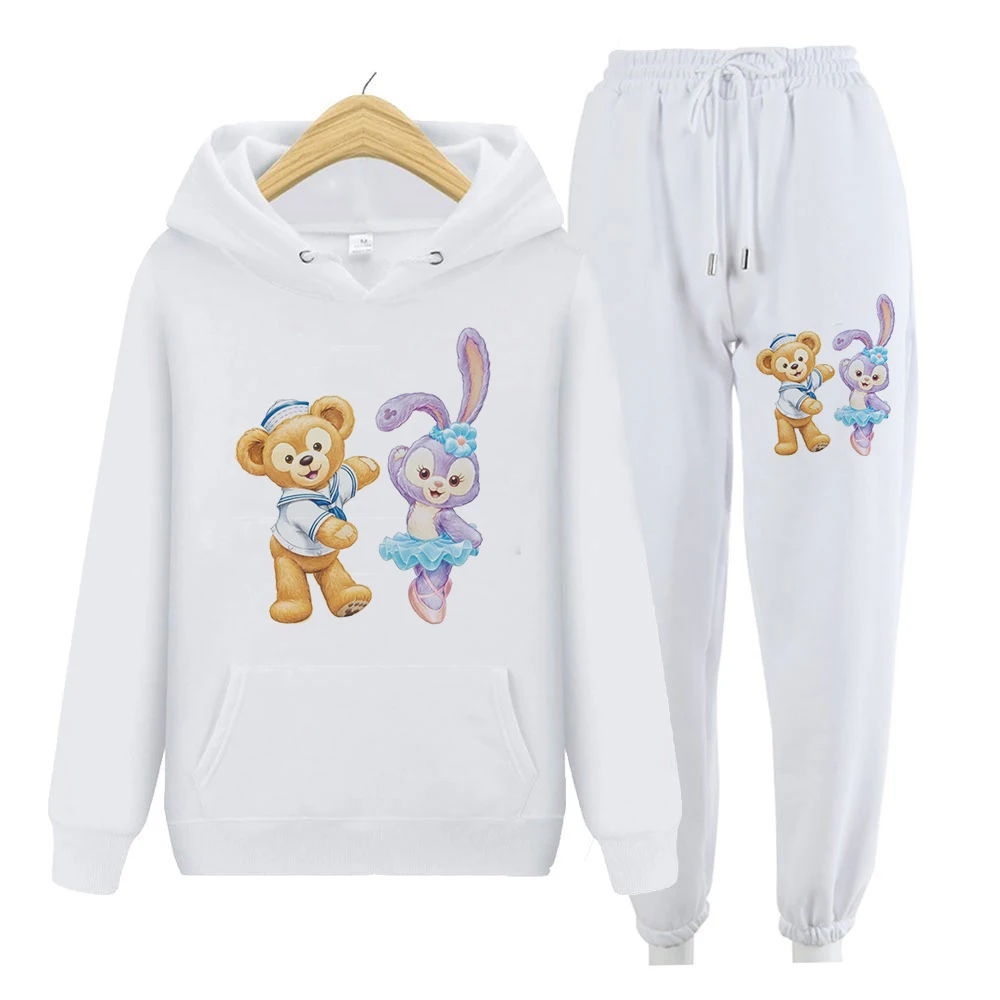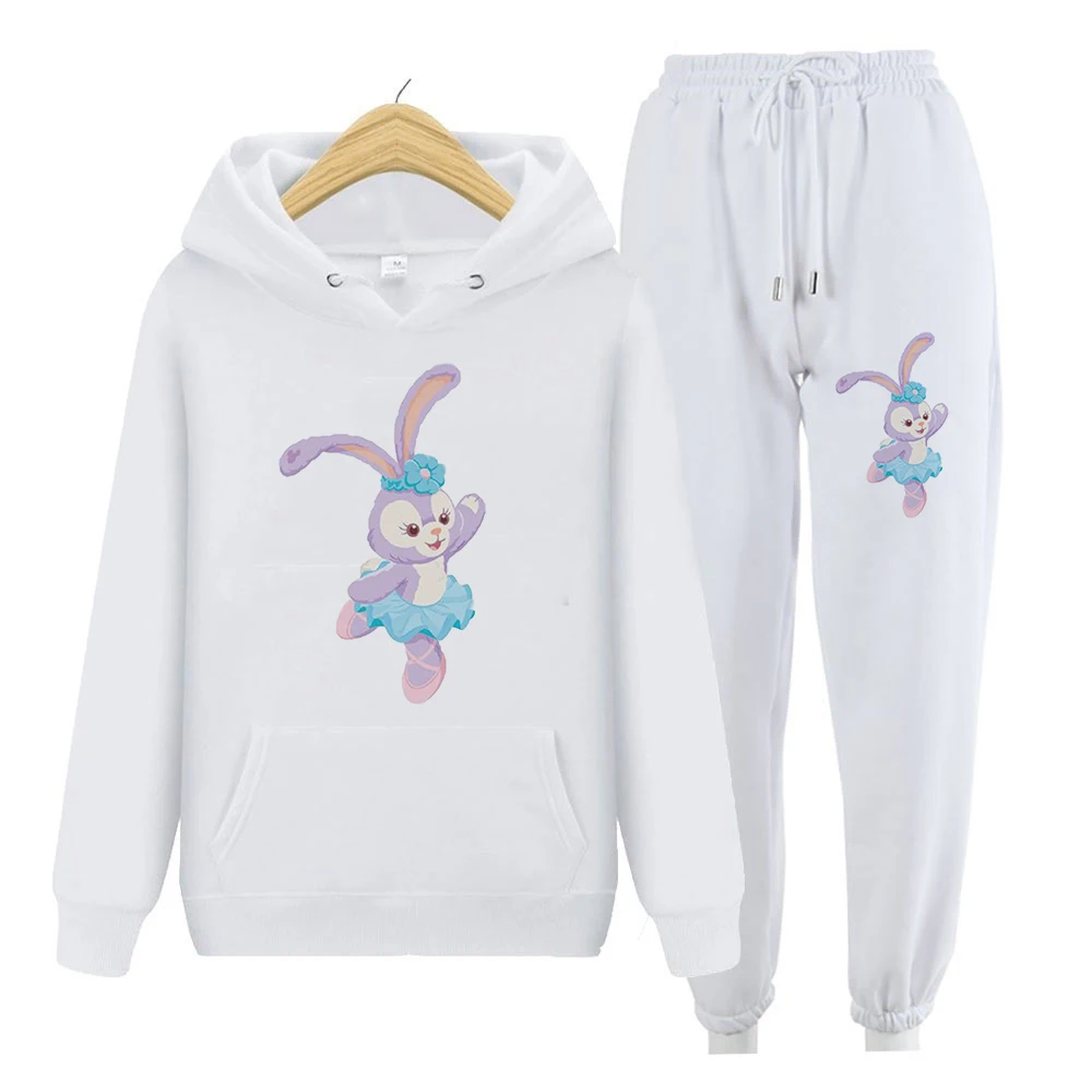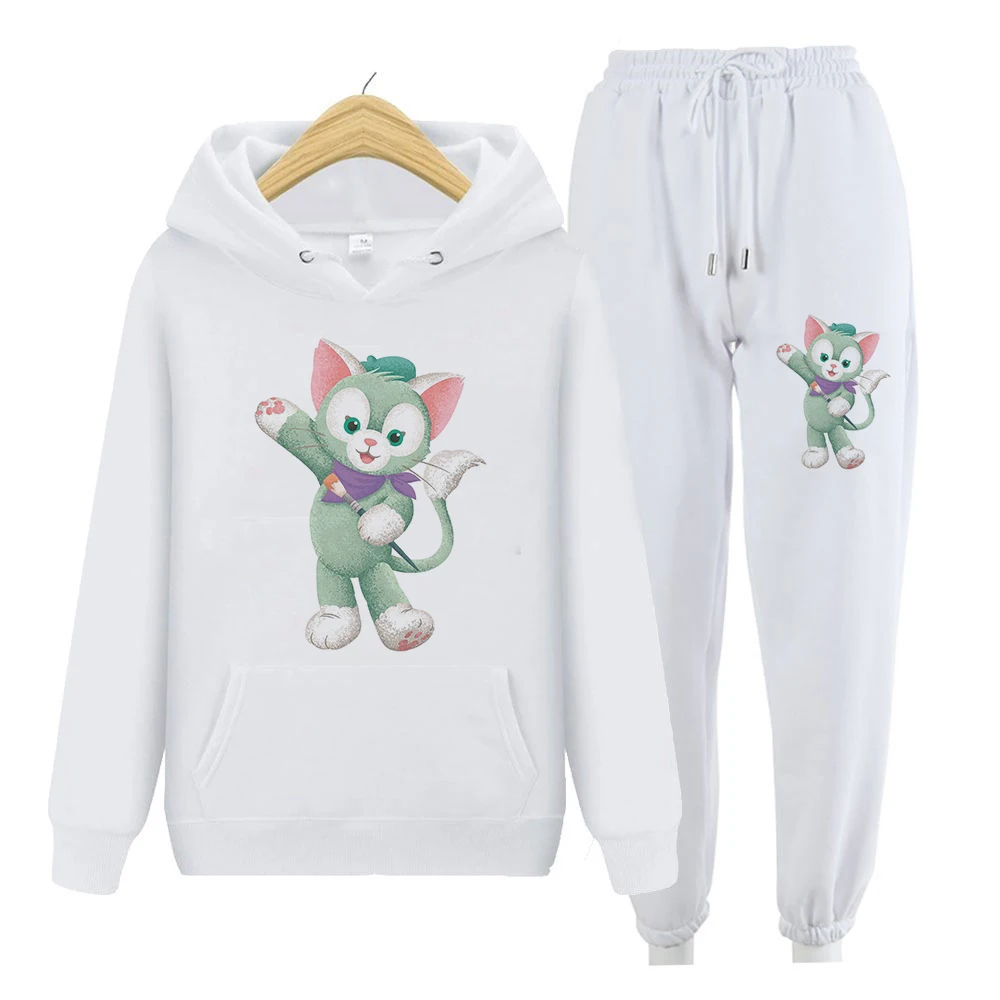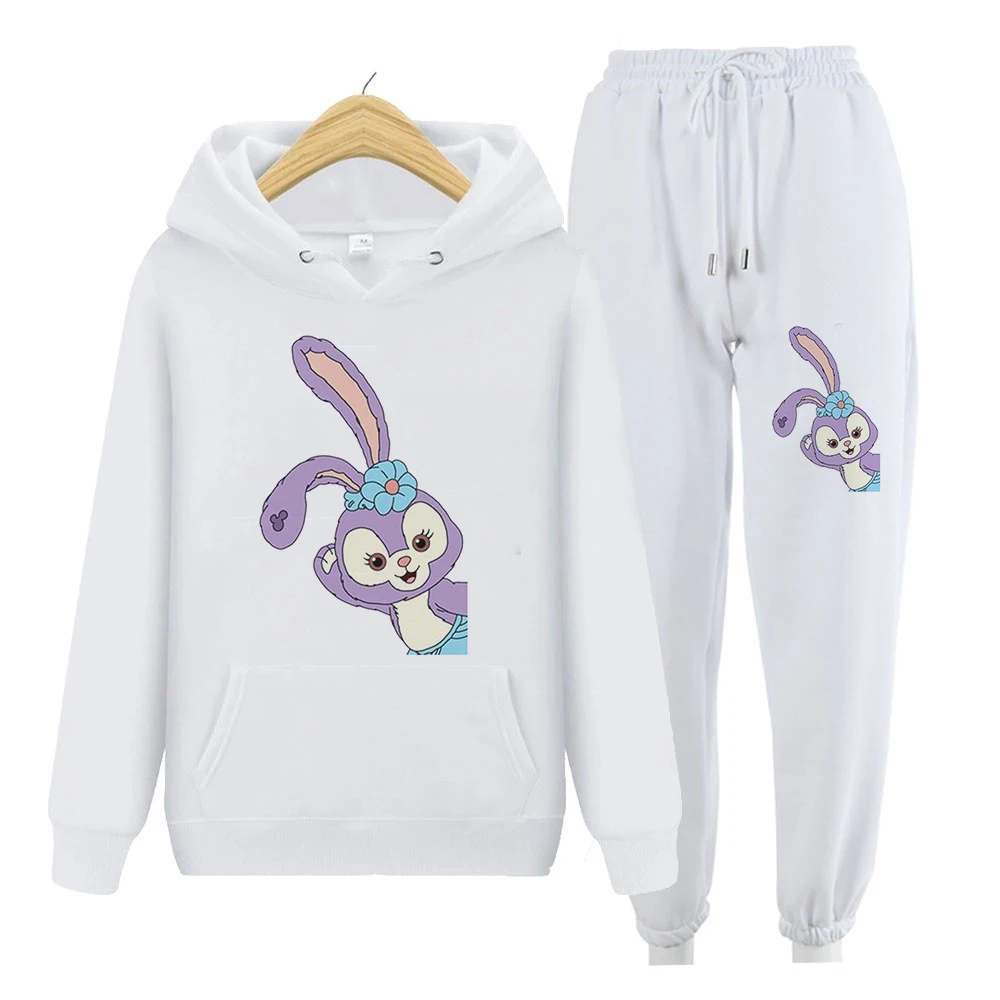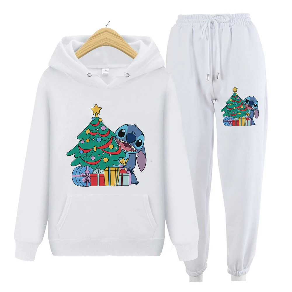 Женский костюм из двух предметов, толстовка с капюшоном и брюки с длинными рукавами и молнией, повседневные брюки для бега, Disney Stitch