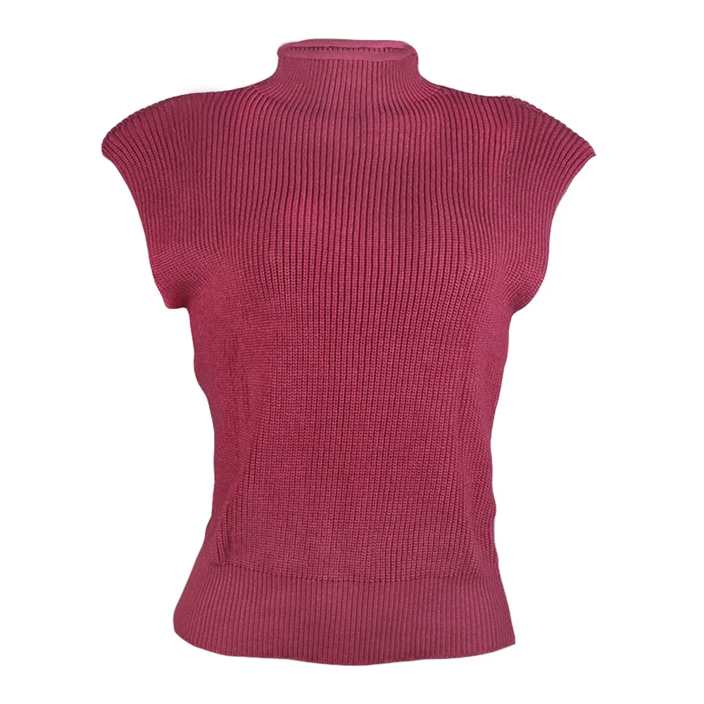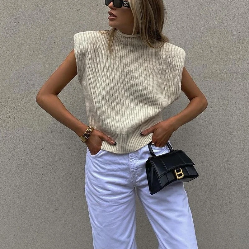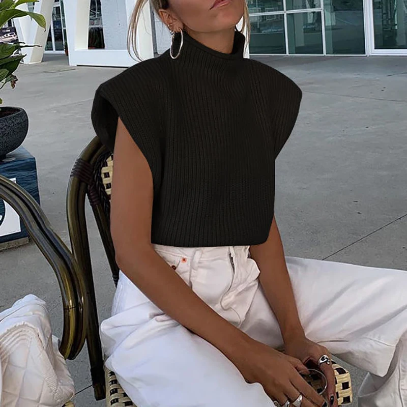 Женский вязаный свитер-водолазка без рукавов, с наплечниками