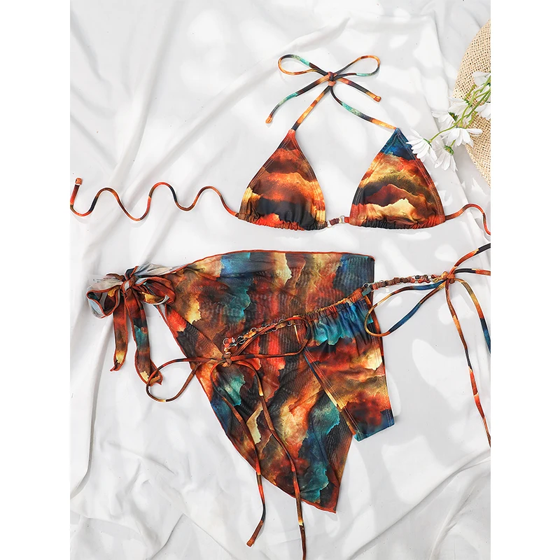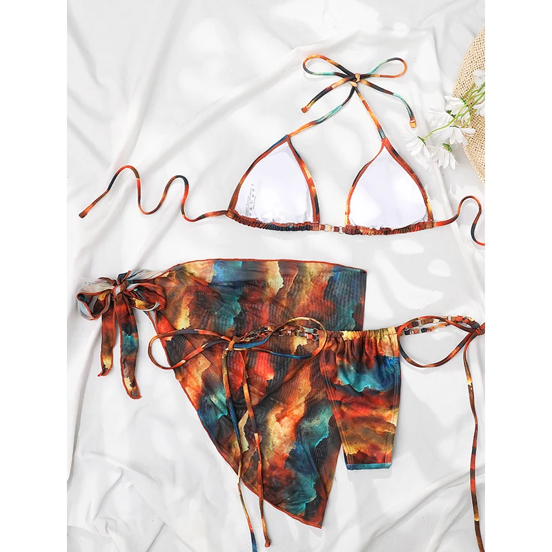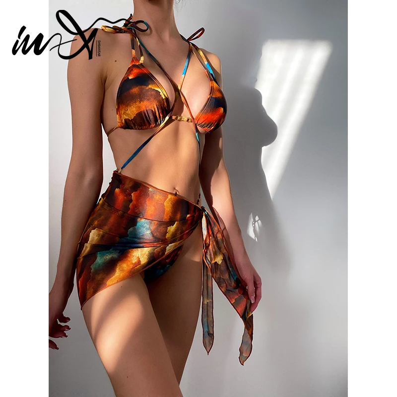 Бикини In-X Tie die 2021, купальник с длинным рукавом, женская юбка...