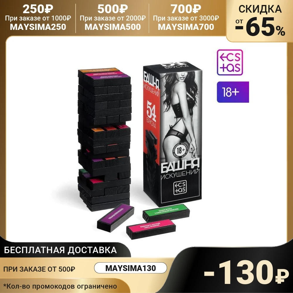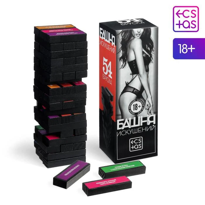 Падающая башня Искушение с фантами, 54 бруска, 18+