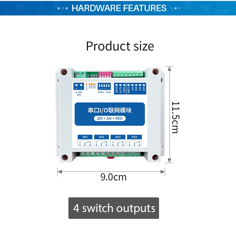 ModBus RTU серийный модуль ввода-вывода RS485 Интерфейс 4DI + 2DO 8...